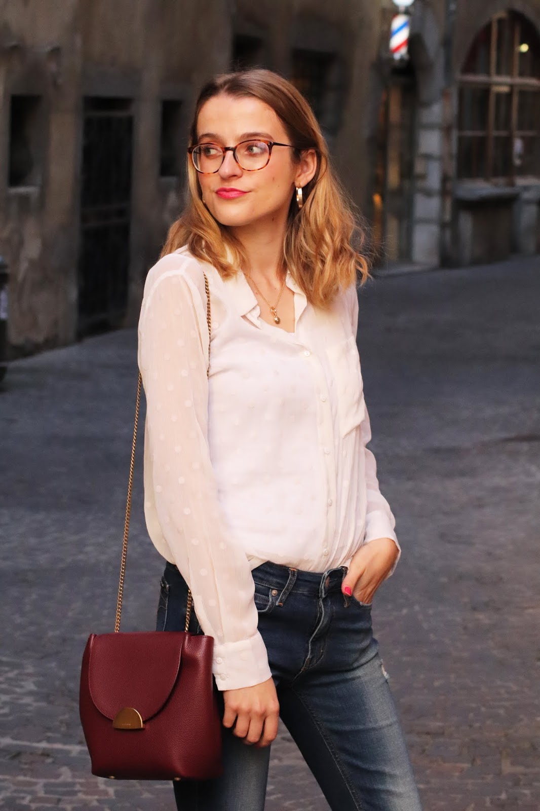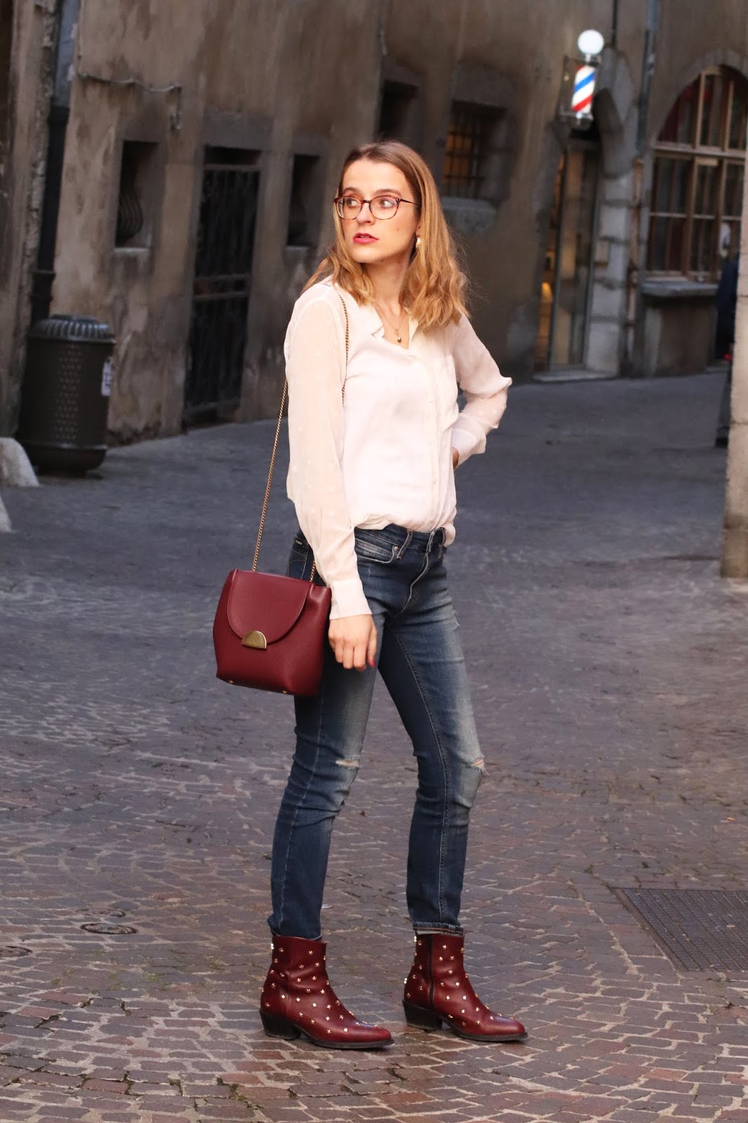J’avais très envie de ressortir mon jean Calvin Klein acheté à NYC il y a un an et demi et dont je suis toujours aussi contente. Mes bottines Jonak qui font partie indubitablement de mes favorites, pour une touche bordeaux avec le sac Polene. D’ailleurs je compte m’en offrir un autre pour mon anniversaire, vous verrez celui que je choisis.