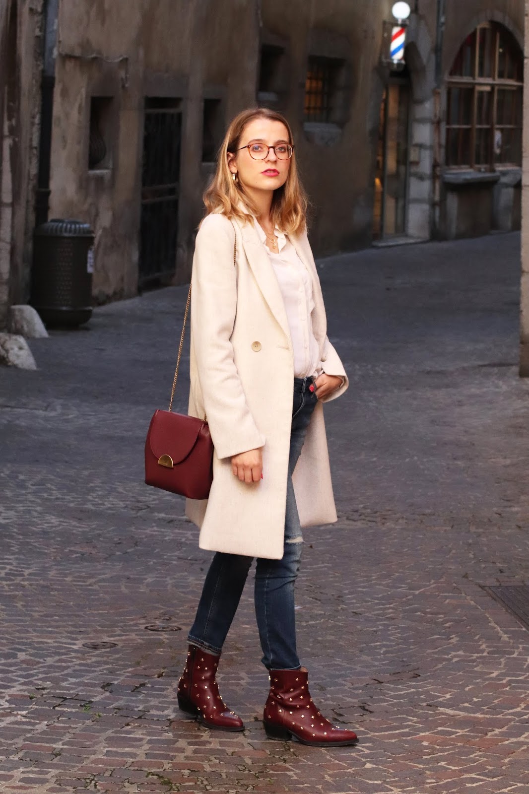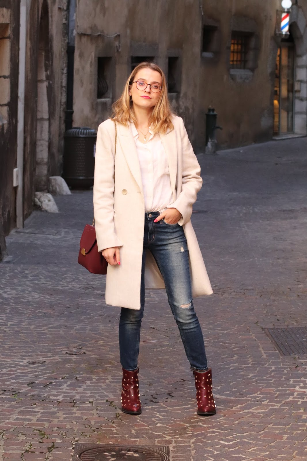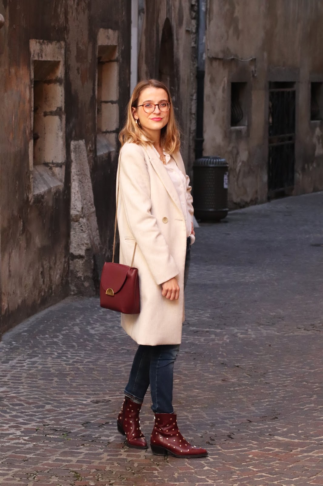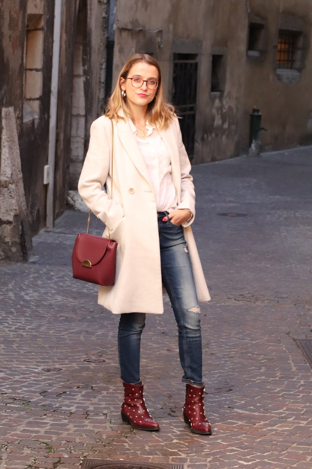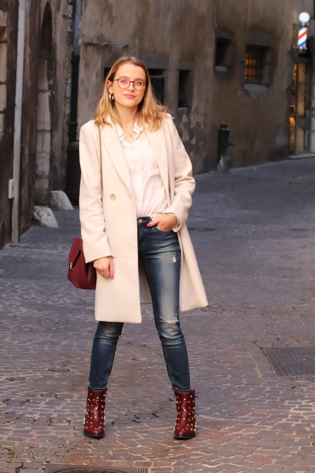 Manteau/Coat: Mango; Chemise/Shirt: Stradivarius; Bag/Purse: Polene; Jean: Calvin Klein; Bottines/Booties: Jonak x Collage vintage