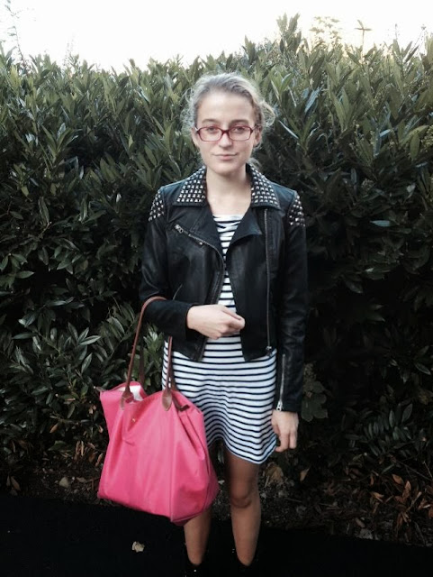 j'adore cette jolie robe marinière et le perfecto est parfait!