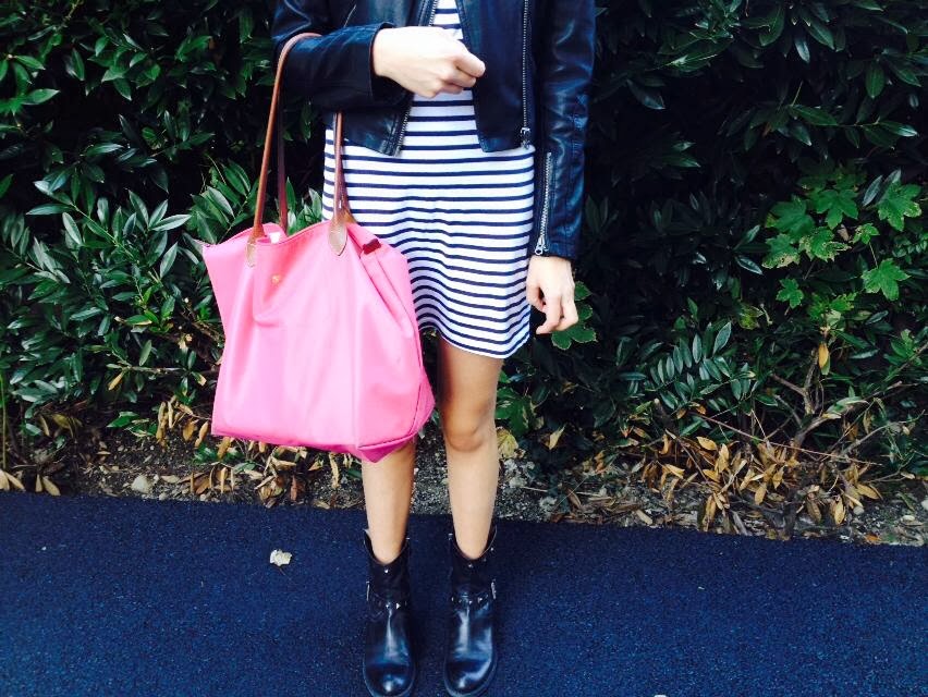 j'adore cette jolie robe marinière et le perfecto est parfait!