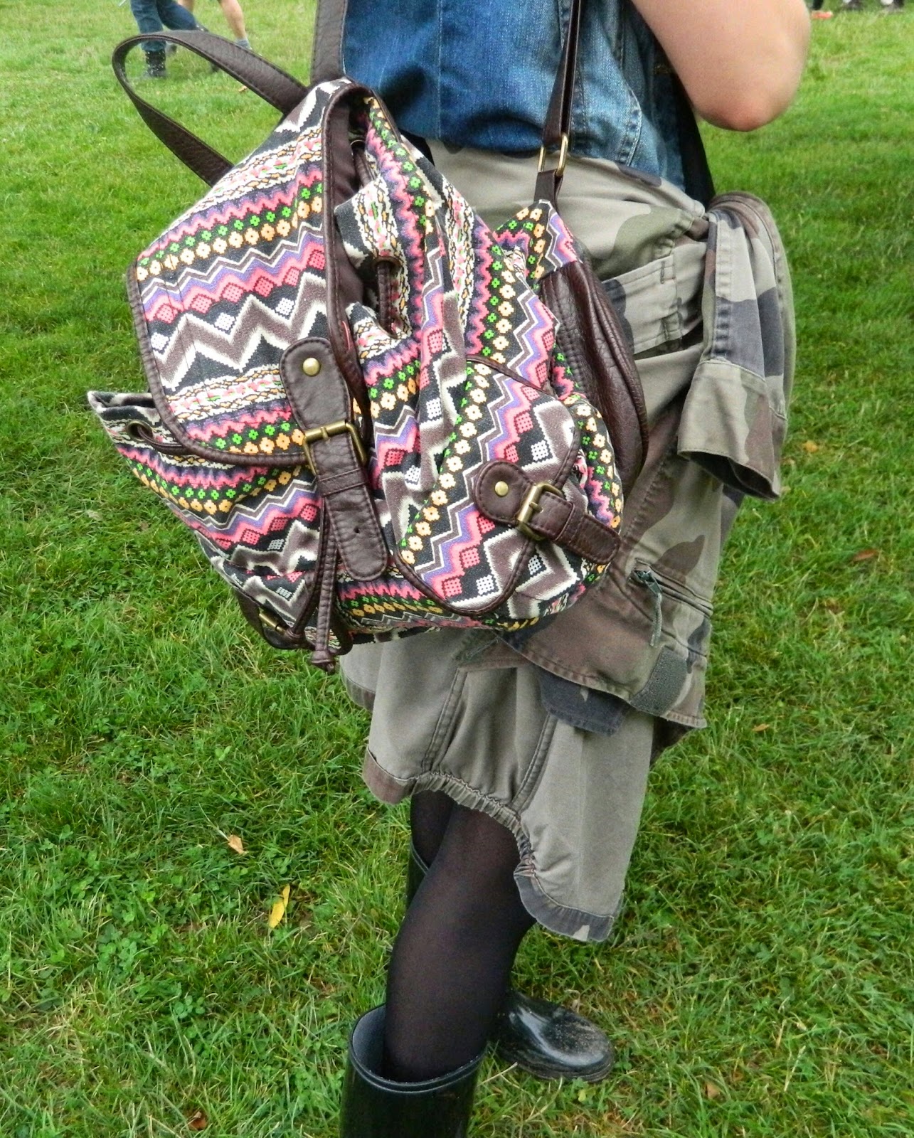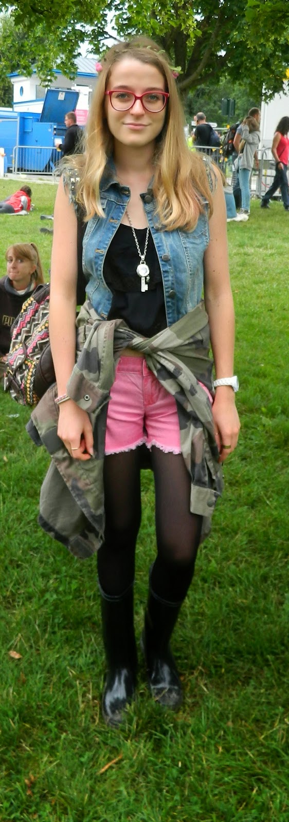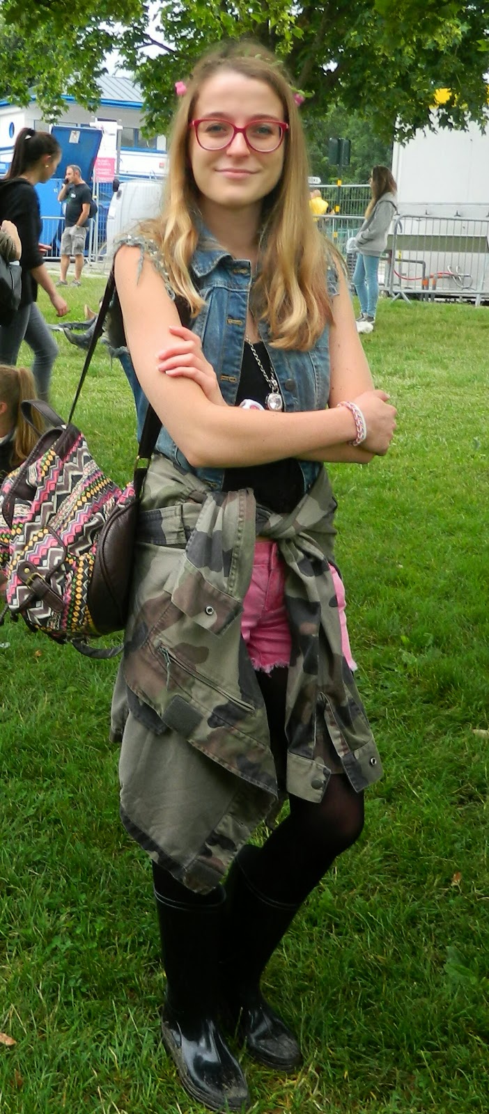 Comme je vous l’ai dit dans mon post inspirations Coachella, j’ai passé trois jours à un festival de musique: Musilac. Le temps n’était pas au rendez-vous, puisque pluie et aux alentours de 15°. Du coup, j’ai du adapter mes tenues. Au lieu d’un simple short, un collant était de rigueur ainsi que des bottes en caoutchouc tellement la boue était omniprésente. Pour être dans le thème festival ( puisque j’adore porter ce genre de looks), j’ai opté pour ma veste militaire trouvée dans une friperie lyonnaise (Tilt Vintage rue Victor Hugo). En dessous, ma veste cloutée sur mon nouveau petit top Jennyfer payé 5€. Avec sa dentelle et sa forme il est parfait. Mon short rose enduit mon headband fleuri, mon collier clé, et mon fidèle sac qui m’a accompagnée durant ses trois jours, acheté il y a trois ans chez New Look, mais que n’ai quasiment jamais mis( j’ai bien tort). En avant la musique! Finalement j’étais bien parée puisque je n’ai pas eu froid. Il faut dire que London Grammar, M, Shaka Ponk et Fauve ont enflammé le festival!