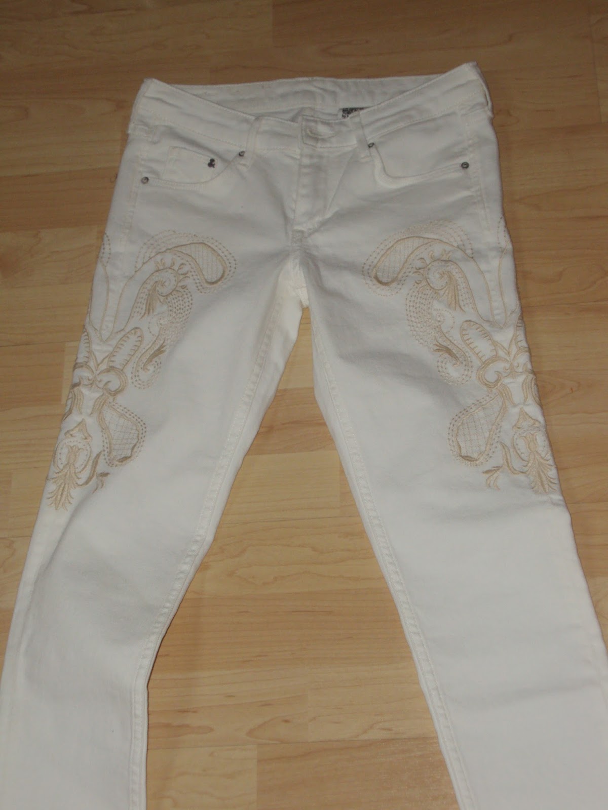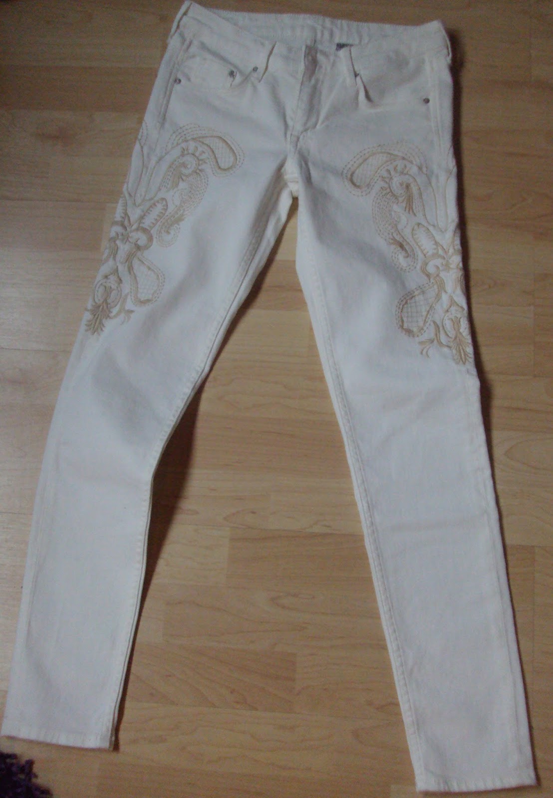 Deux nouveaux jeans dans ma penderie: un blanc avec broderies et un écossais. Il me fallait un jean blanc, pour la belle saison, c’est incontournable. Depuis mon jean transformé en short, il m’en fallait un autre. C’est chose faite et je l’adore. Quant à l’écossais, j’adore les motifs originaux comme vous le savez, et j’ai beaucoup aimé celui-ci.