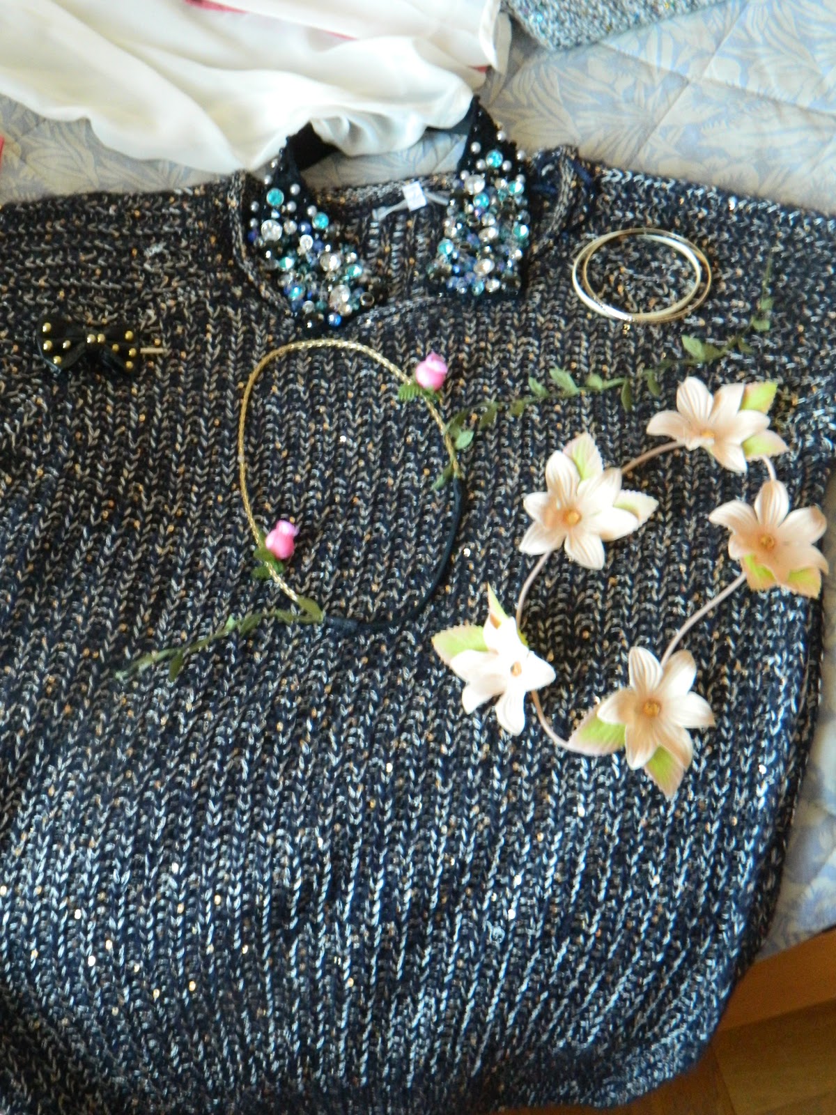 Pull, bracelet et barrette noeud New Look, Col H&M,