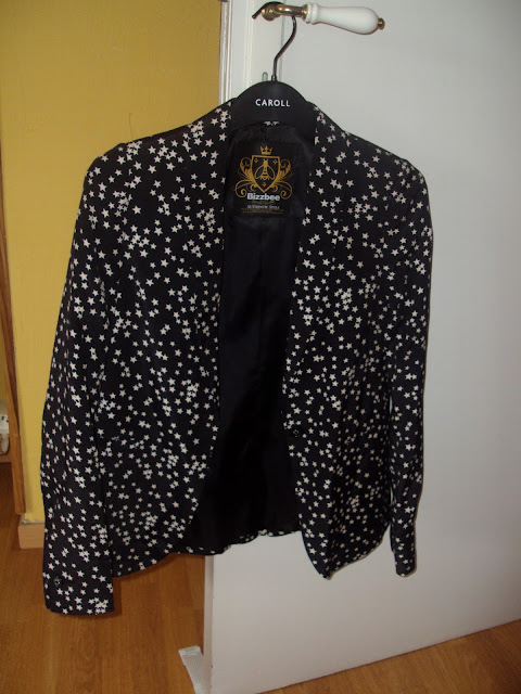 Bizzbee, je n’y achète quasiment jamais rien. J’ai deux jupes, un short de cette enseigne et c’est tout. Ophélie est une adepte de cette enseigne, et avait acheté ce superbe blazer étoilé durant les soldes d’hiver. En allant à Marseille, je fouille un peu dans les soldes de Bizzbee, et je tombe sur le même blazer! Il n’en restait qu’un seul. Taille 32. Alors ok je suis mince, mais 32 c’était quand même limite. Je l’essaie quand même( on ne sait jamais) et franchement, il est super. Il faut juste que je ne bouge pas trop quand je l’ai sur moi quoi. Gros plus: le prix. 20€ au lieu de 70. Je ne l’aurais jamais payé à son prix initial, mais là: embarqué le coco. Ils étaient bien obligés de faire des efforts niveau prix. Il était là depuis tellement longtemps. Grosse fierté pour ce magnifique blazer.