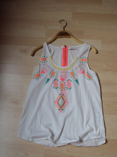 Quelques jours avant j’avais pris ce petit haut léo( accro moi?). Il existait en vert, rose, et orange. J’ai pris celui là et j’aime beaucoup. Il a un joli dos, et à 7€, je ne prends pas beaucoup de risque. Au lieu de 13 il me semble.