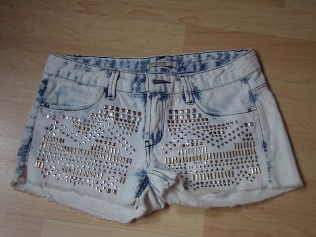 Un short Stradivarius offert par ma cousine. Vient tout droit de Barcelone. Elle connait bien mes goûts pour les strass, clous et les shorts!
