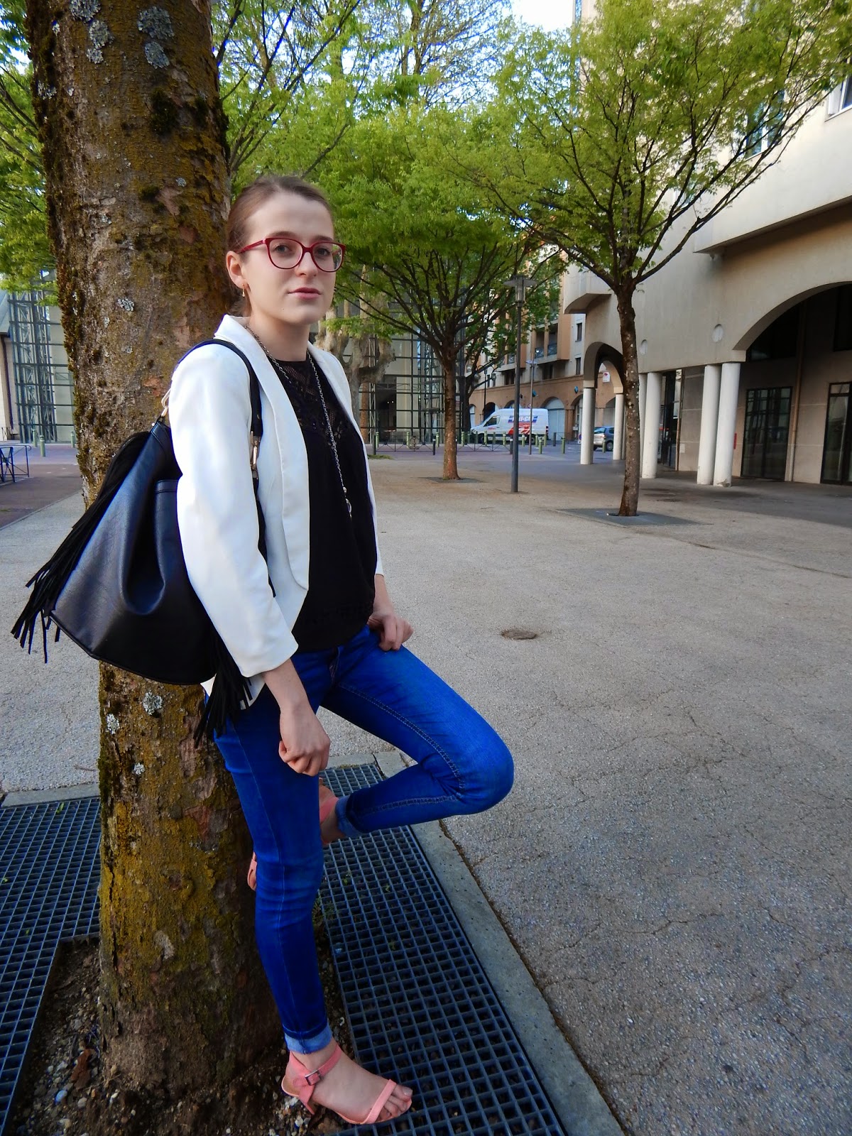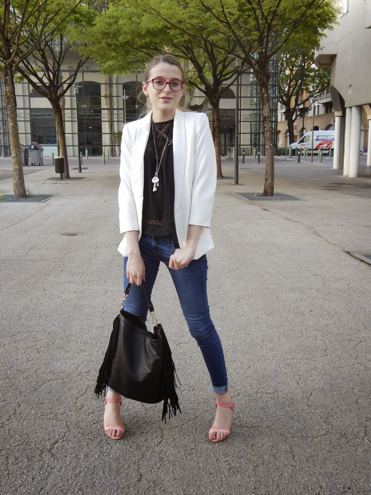 Veste/Jacket: H&M; Haut/Shirt: Mango; Jean: Levi’s; Sac/Bag: Jennyfer; Sandales/Sandals: New Look; Vernis pieds/Feets nail polish: Essie