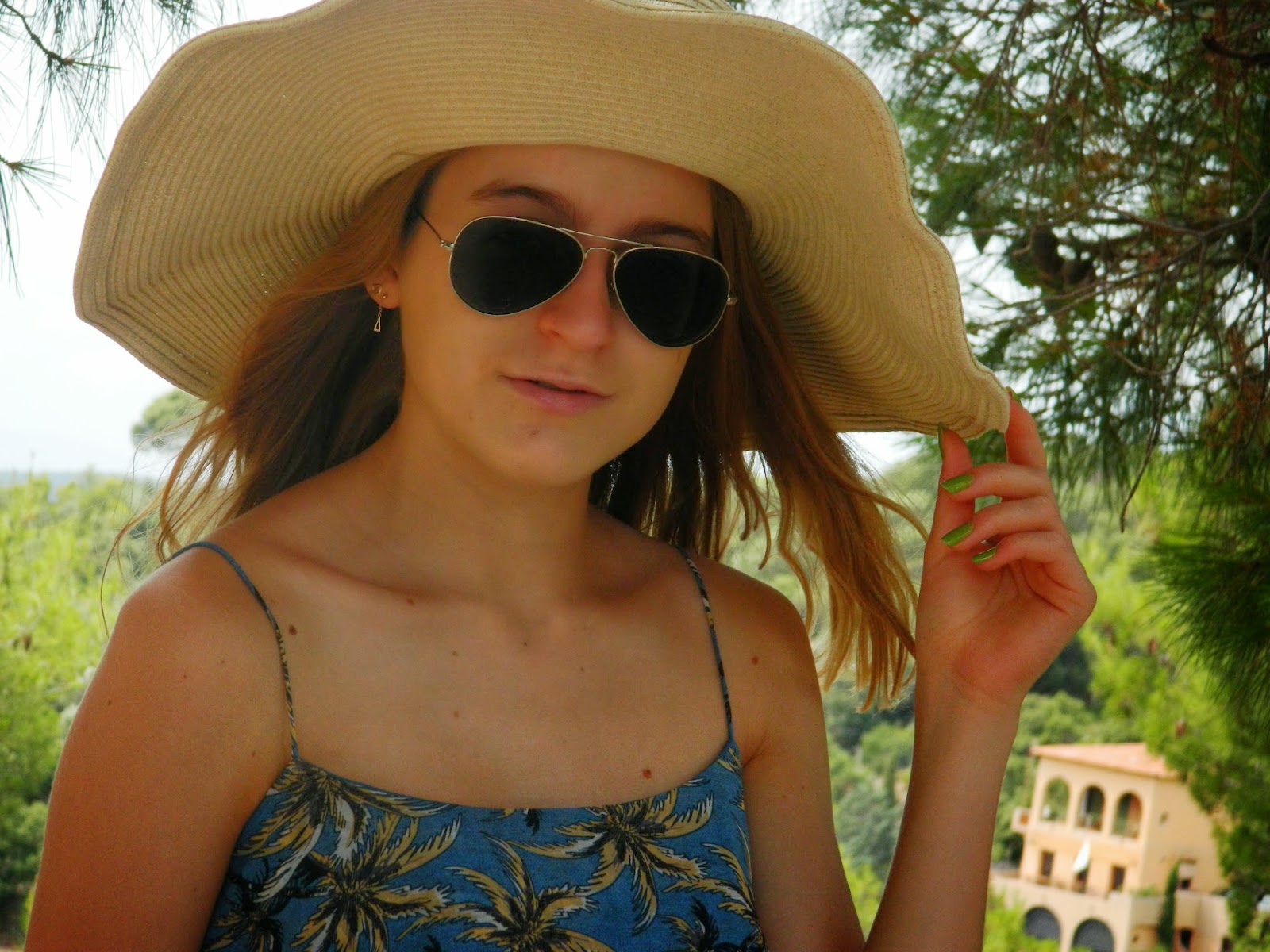 Robe/Dress: Mango; Capeline/Hat: Moa; Vernis mains/Hands nails: Yves Rocher; Vernis pieds/Feets nails: OPI;  Sac/Bag: Mango; Compensées/Heels: Big