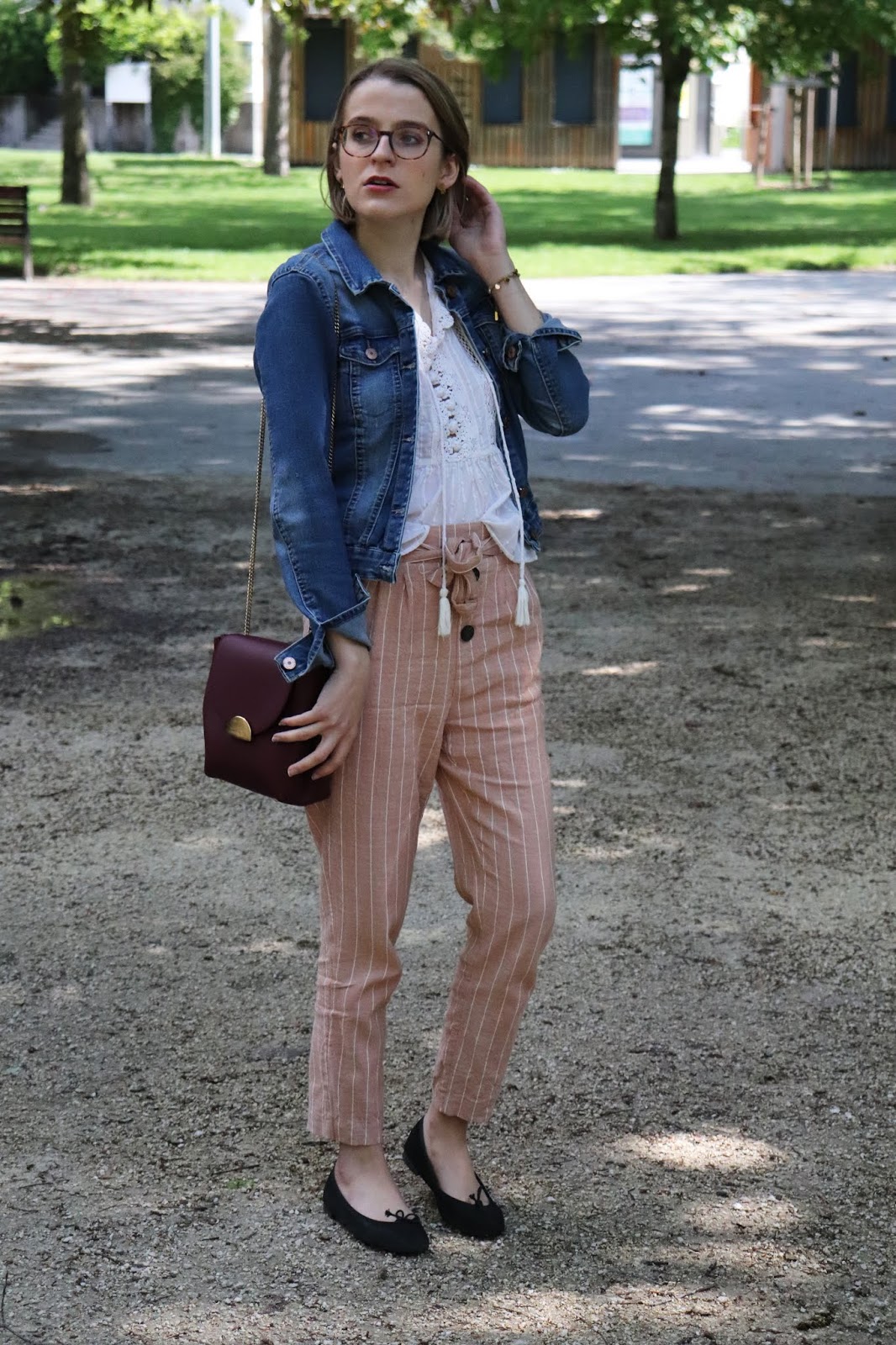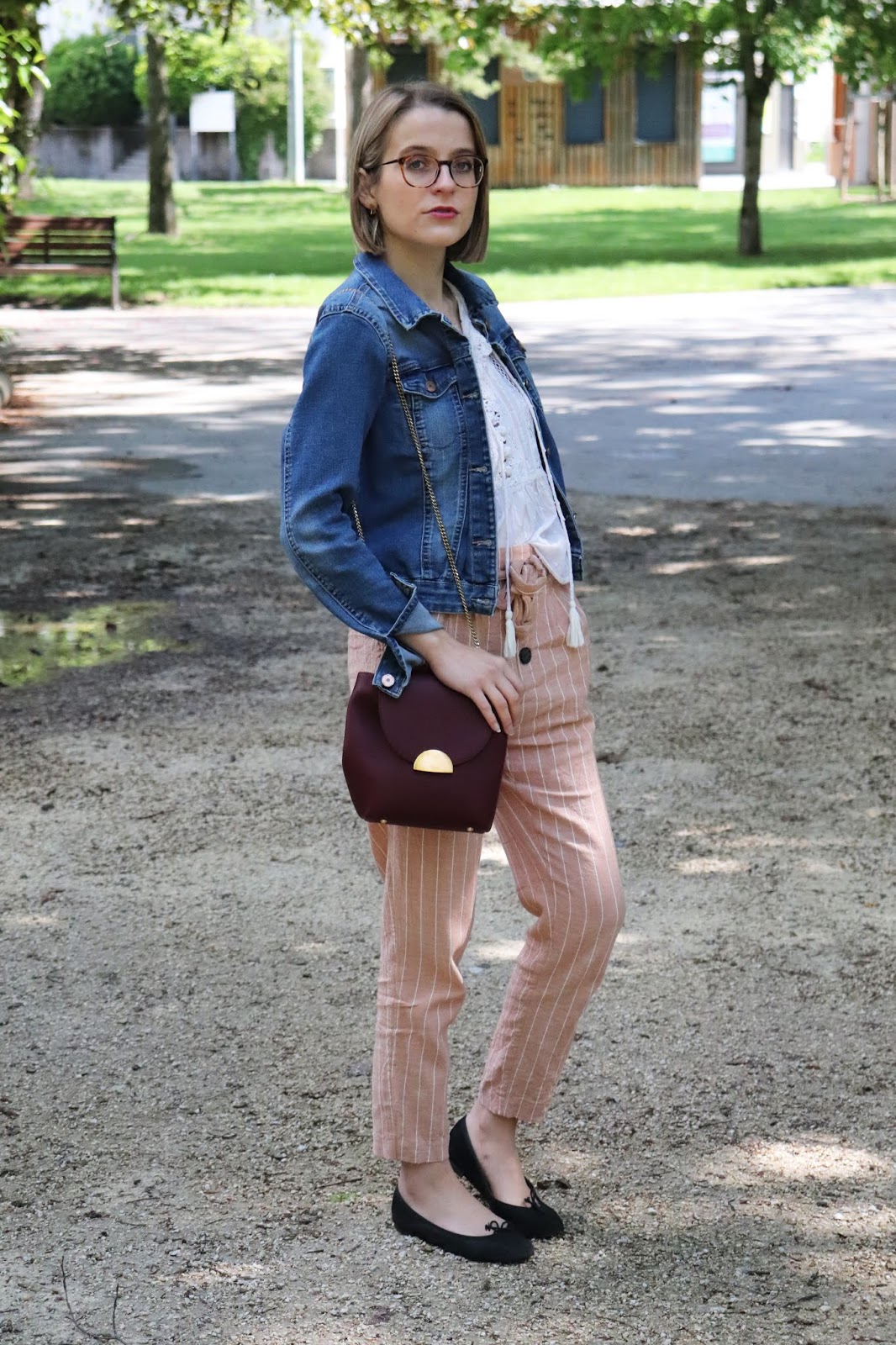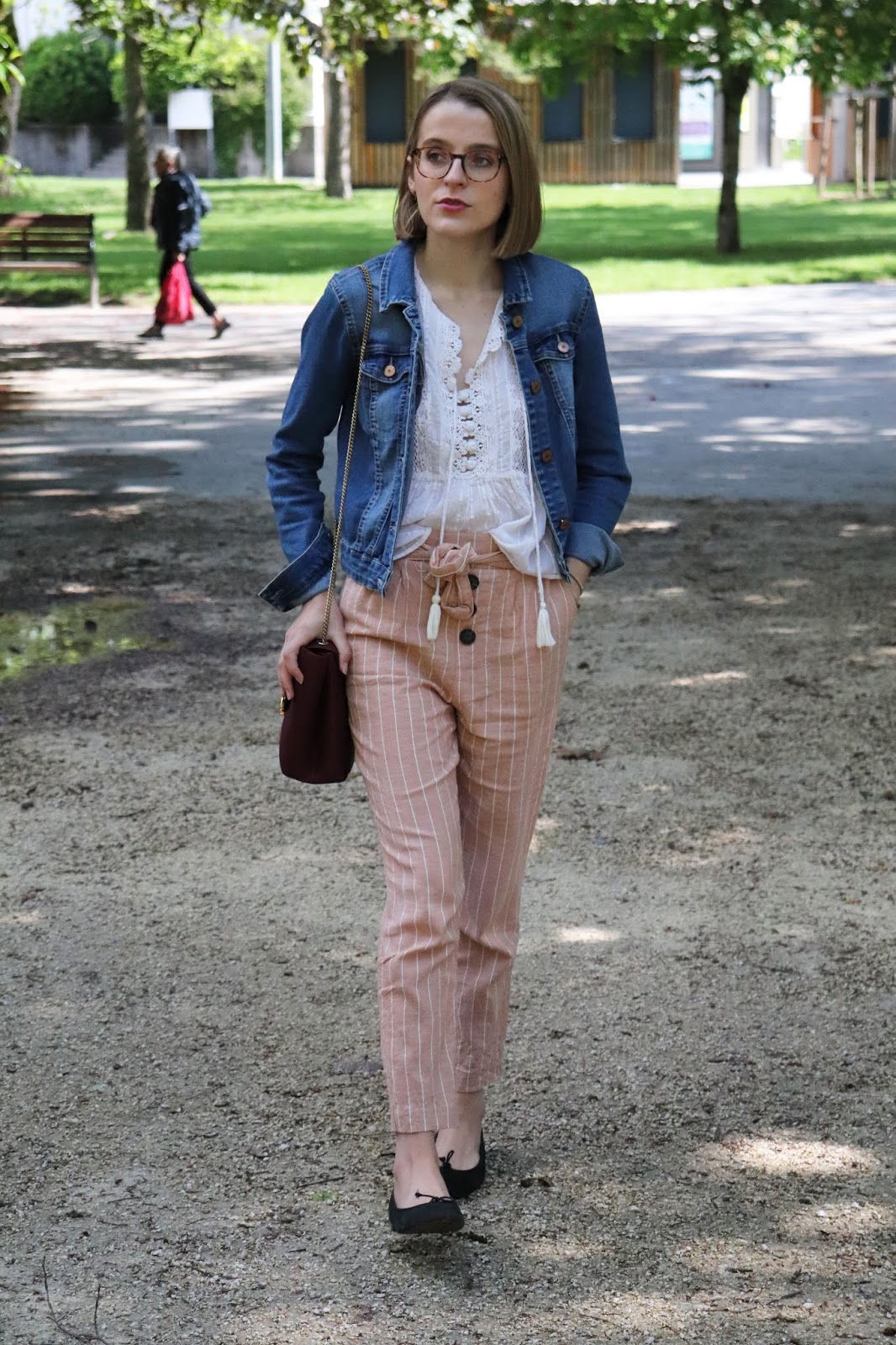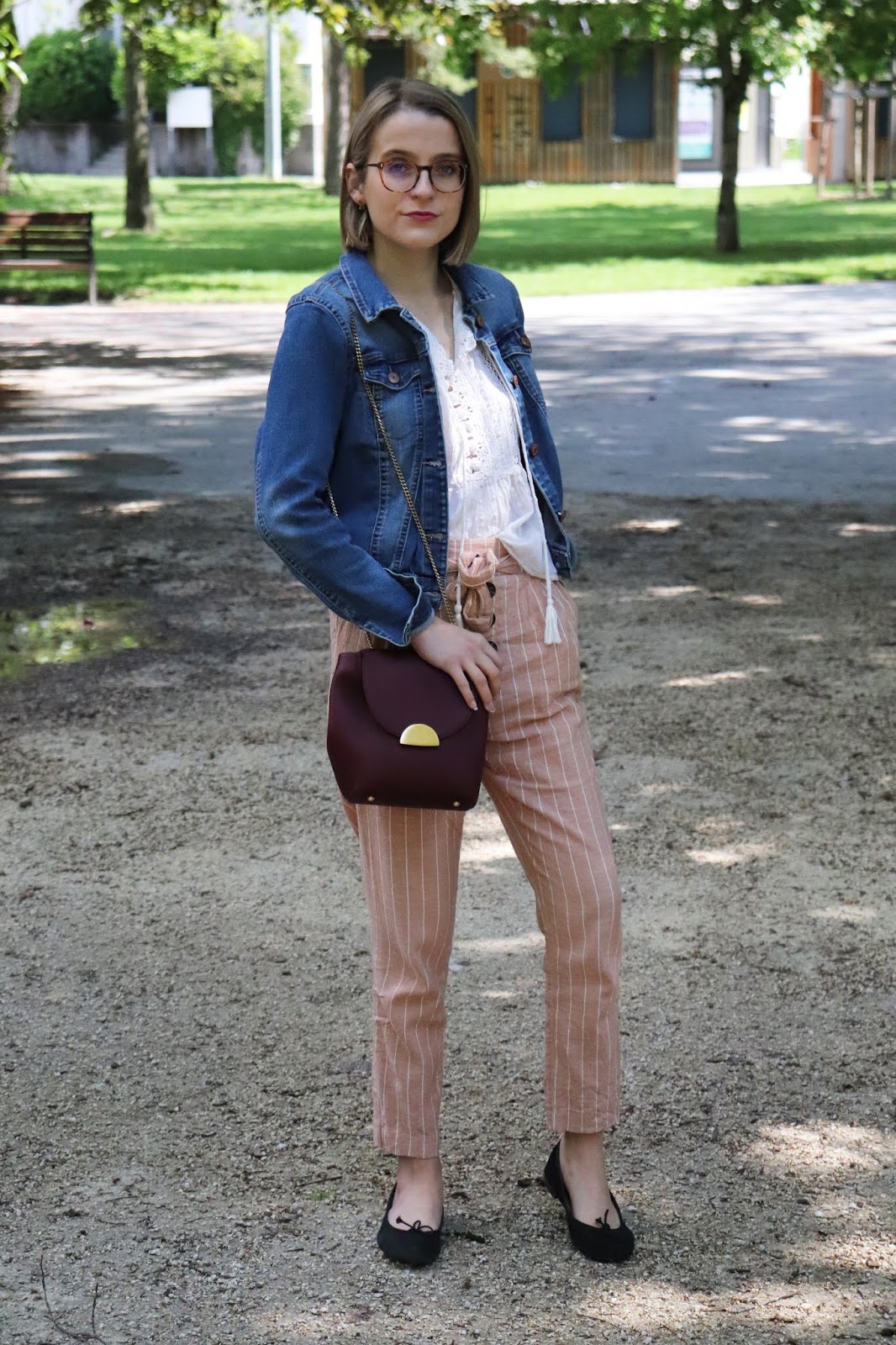 Une tenue encore printanière avec mon nouveau pantalon rayé de chez Stradivarius que j’aime beaucoup trop. Je l’ai également acheté en beige, ils sont super confortables, une sorte de lin assez léger, et un très bon rapport qualité prix pour 20€. Un chouette compromis entre un jean un peu trop chaud pour la saison, et une jupe, parfois trop légère quand il fait 10-15 degrés.