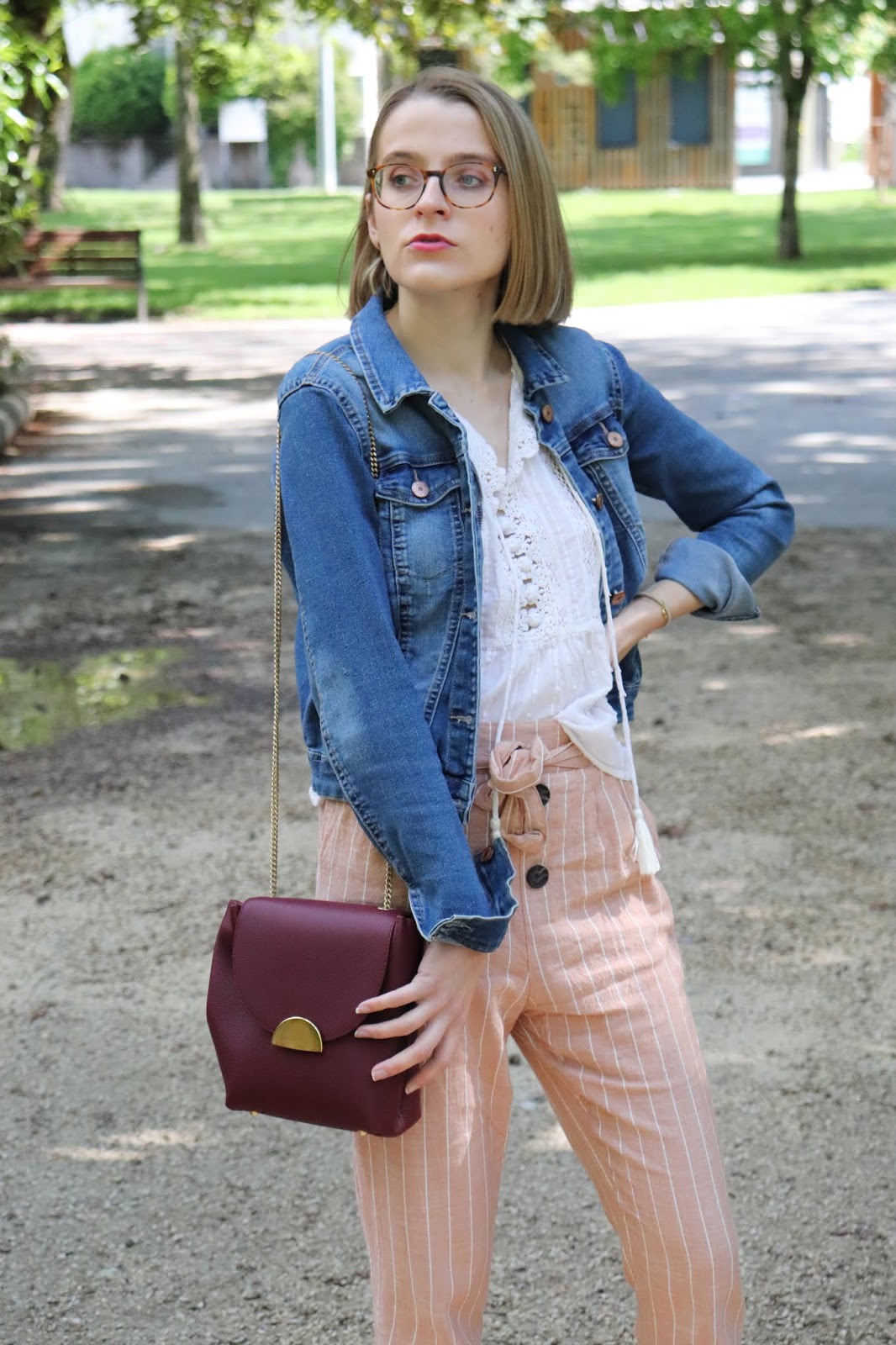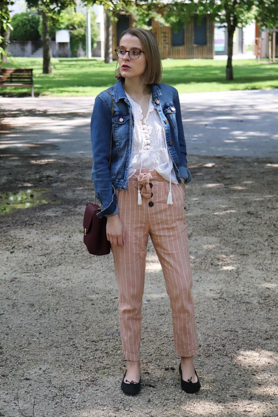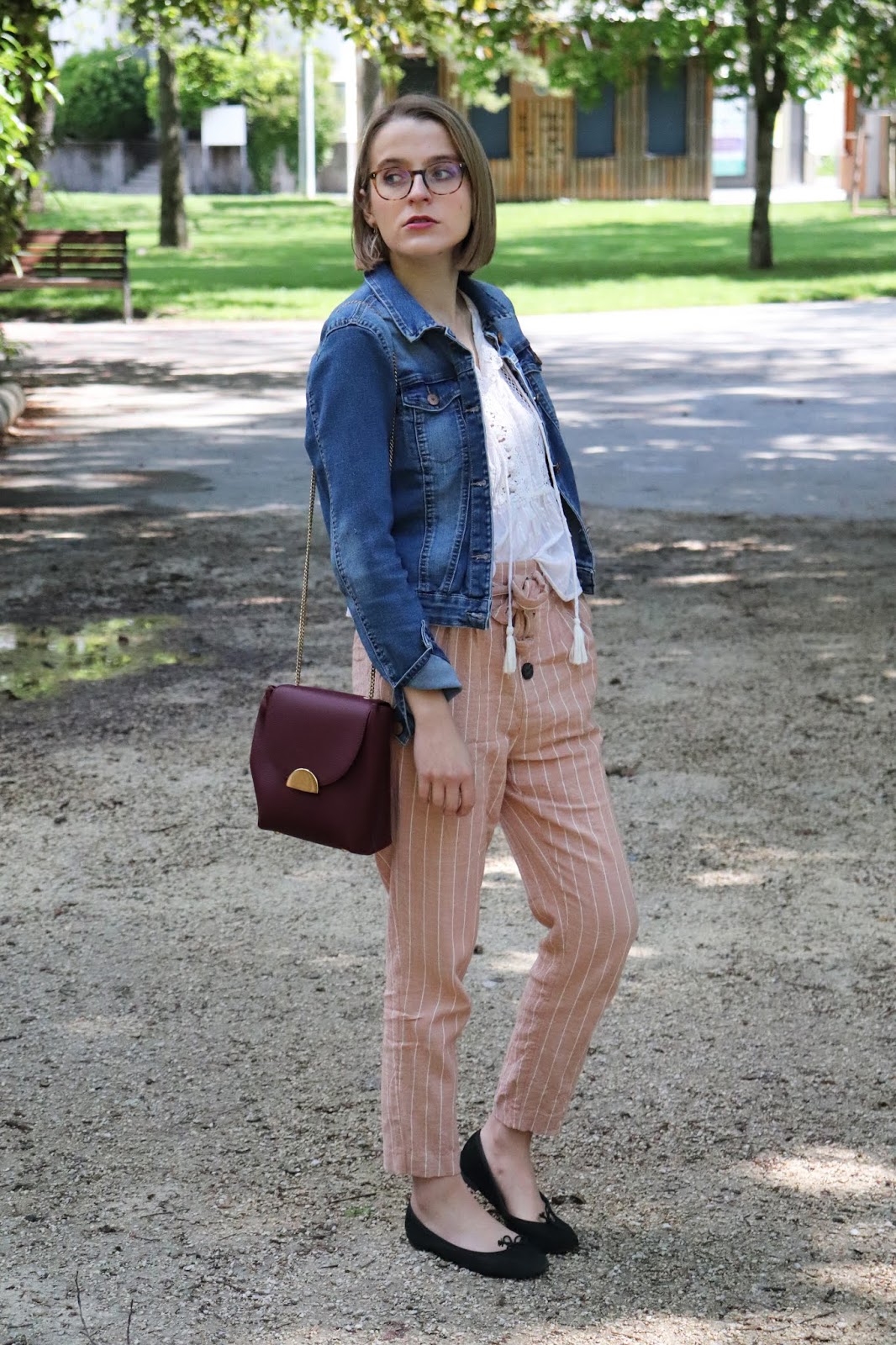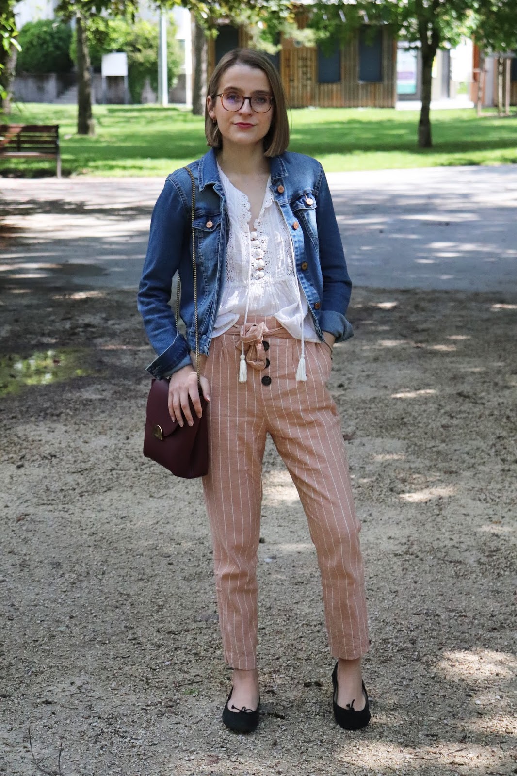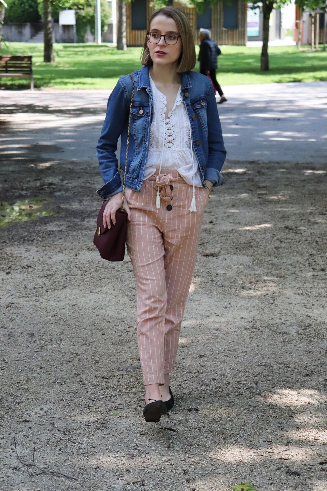 Une tenue encore printanière avec mon nouveau pantalon rayé de chez Stradivarius que j’aime beaucoup trop. Je l’ai également acheté en beige, ils sont super confortables, une sorte de lin assez léger, et un très bon rapport qualité prix pour 20€. Un chouette compromis entre un jean un peu trop chaud pour la saison, et une jupe, parfois trop légère quand il fait 10-15 degrés.