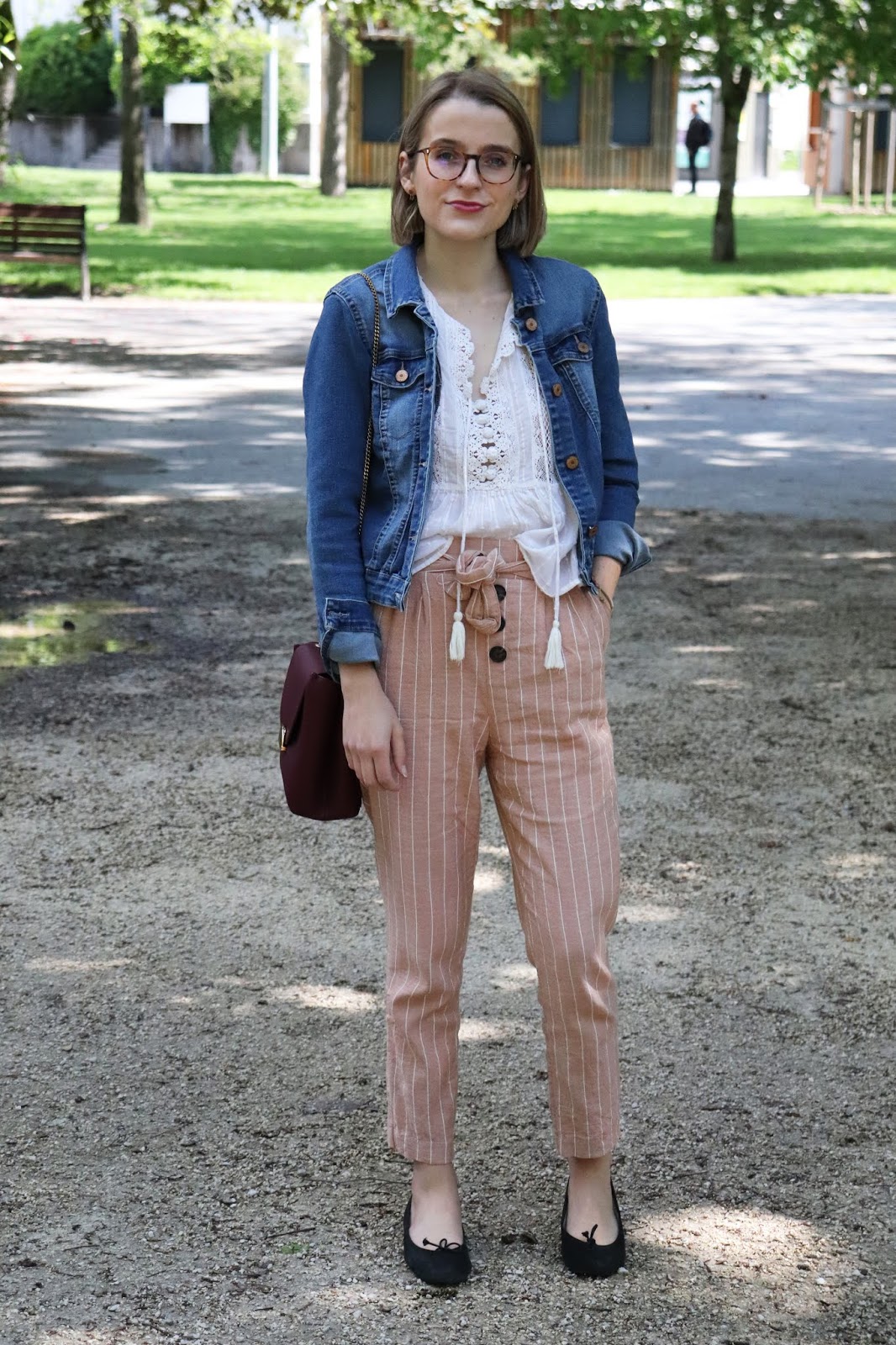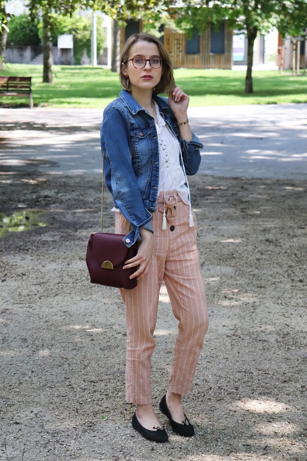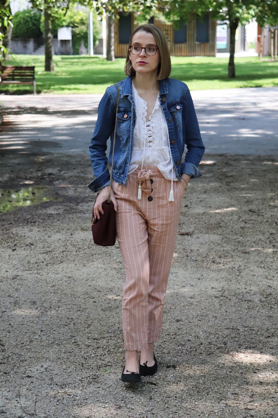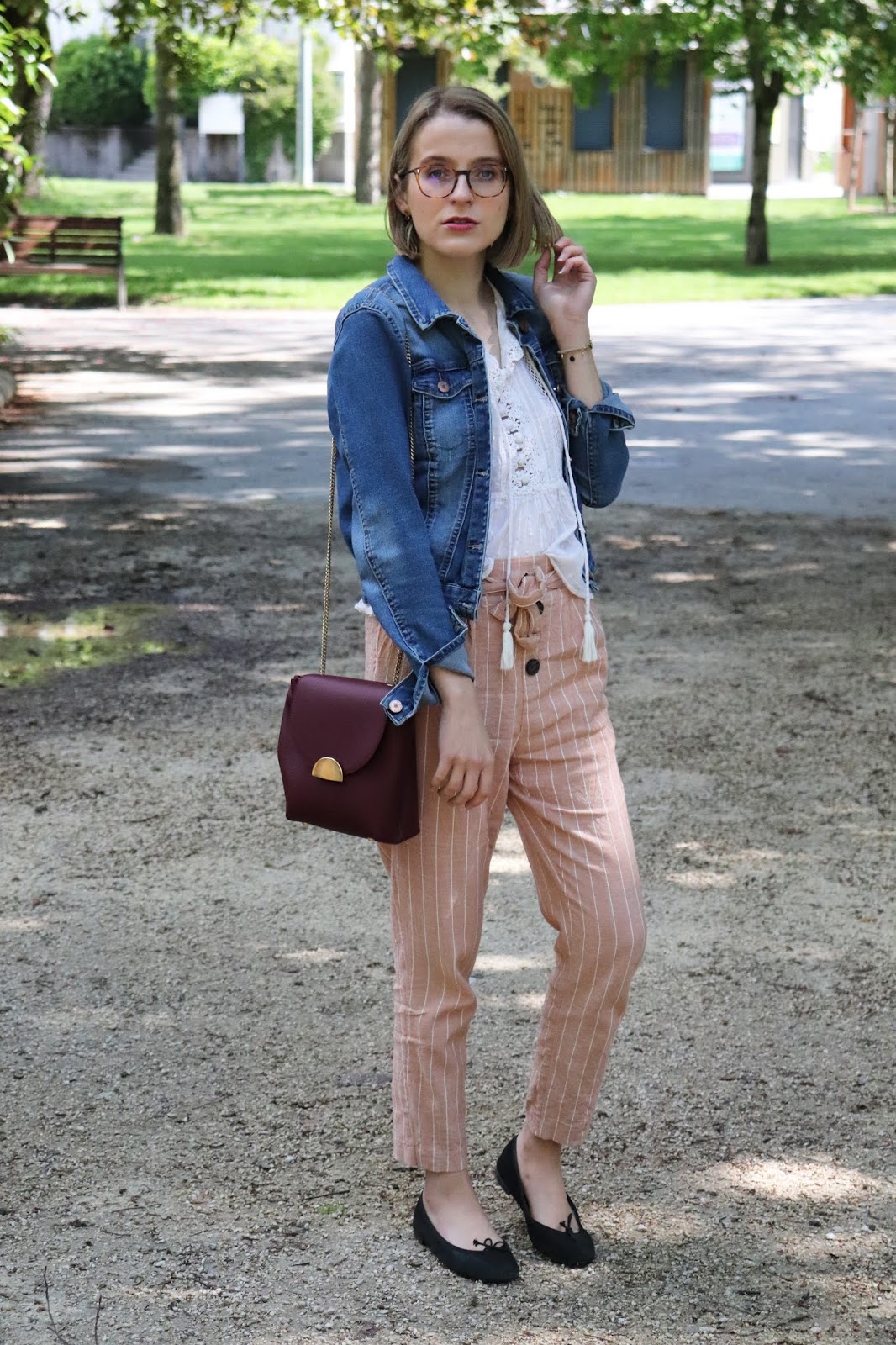 Une tenue encore printanière avec mon nouveau pantalon rayé de chez Stradivarius que j’aime beaucoup trop. Je l’ai également acheté en beige, ils sont super confortables, une sorte de lin assez léger, et un très bon rapport qualité prix pour 20€. Un chouette compromis entre un jean un peu trop chaud pour la saison, et une jupe, parfois trop légère quand il fait 10-15 degrés.