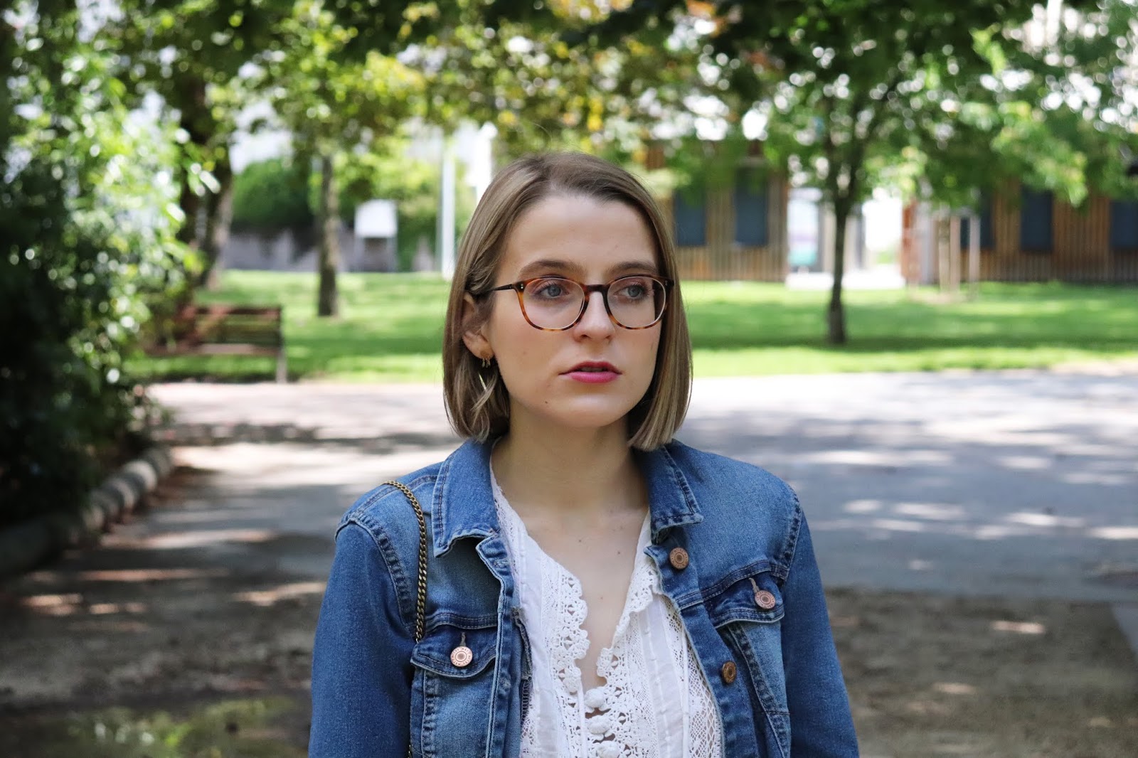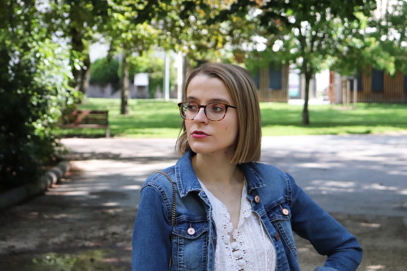 Veste/Denim jacket: Noisy May sur Asos; Top: Zara; Sac/Purse: Polene; Pantalon/Pants: Stradivarius; Ballerines/Shoes: Repetto
