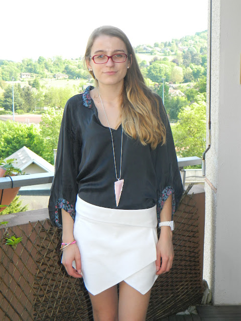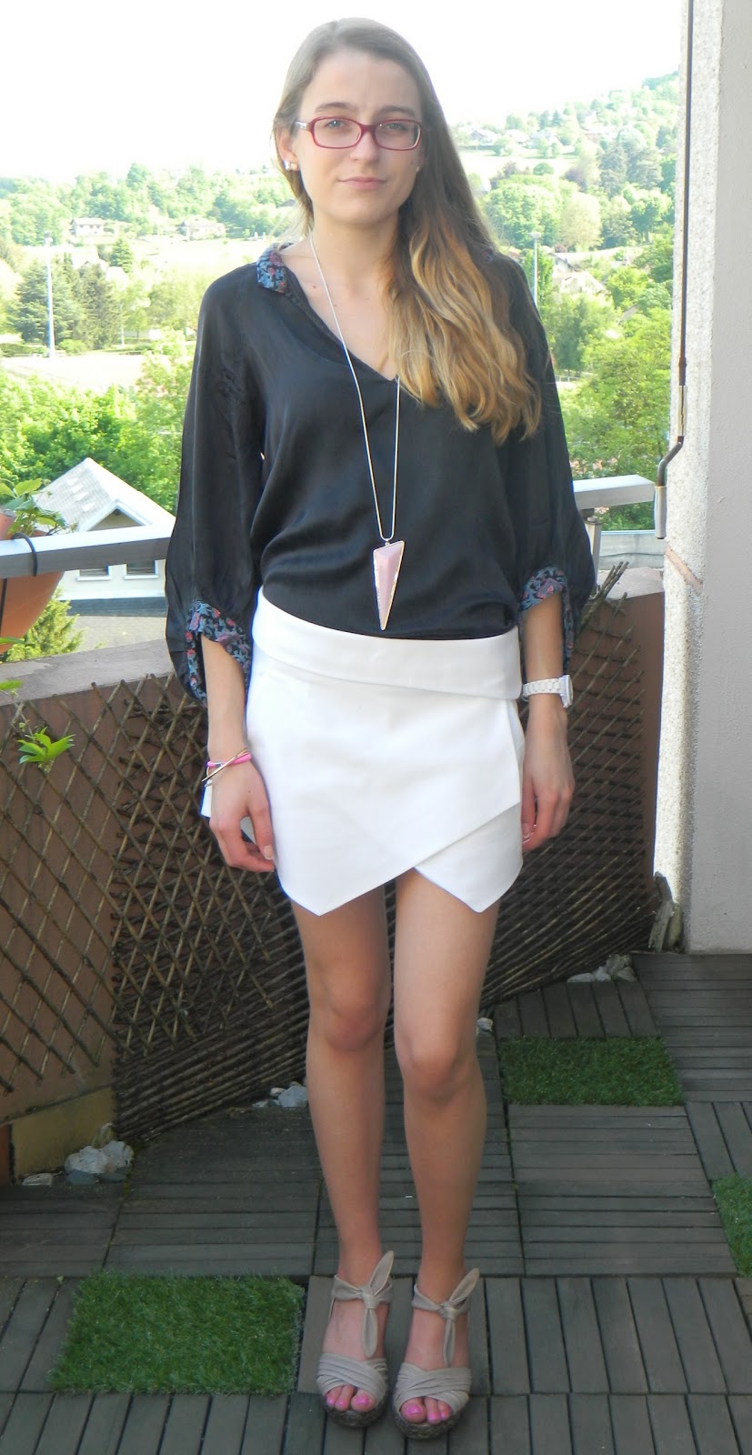 Blouse: Ba&sh; Collier/ Necklace: I am; Montre/ Watch: Ice Watch; Jupe short/ Skirt: Zara vue ici; Escarpins/ Heels: Elite: Vernis/ Nail polish: OPI