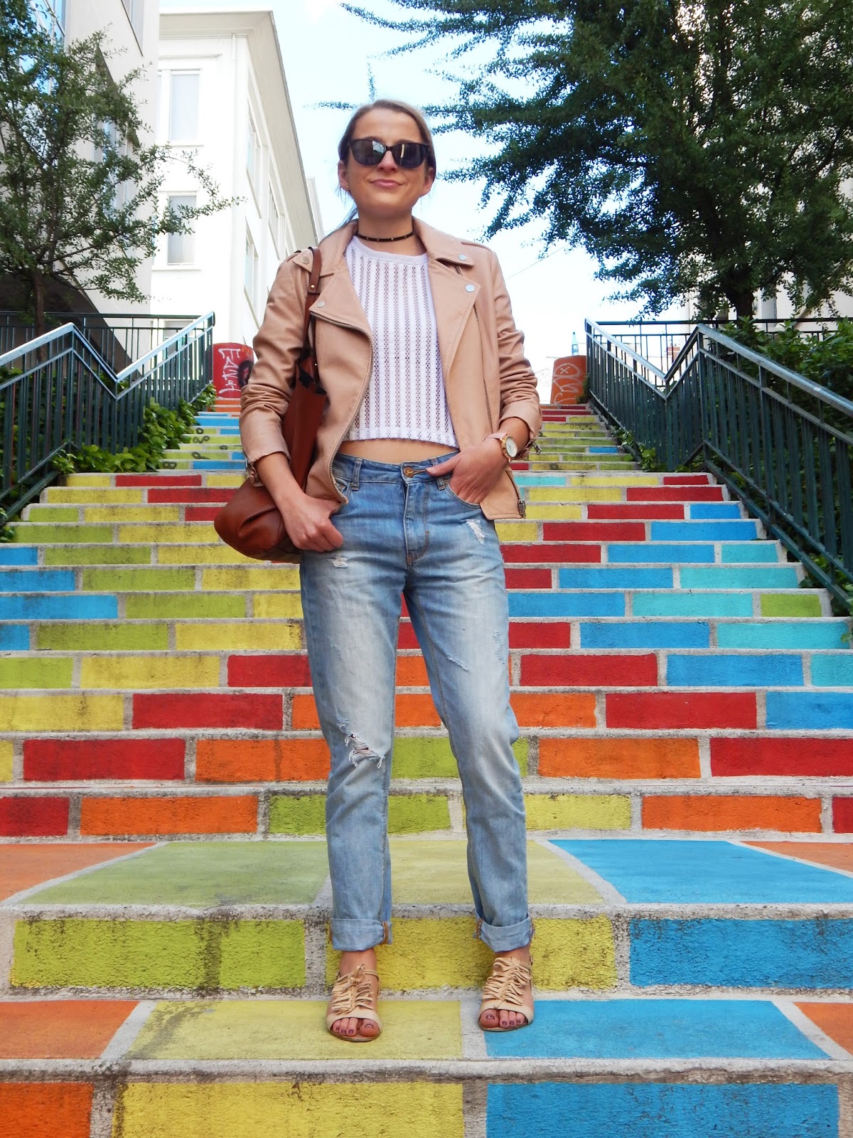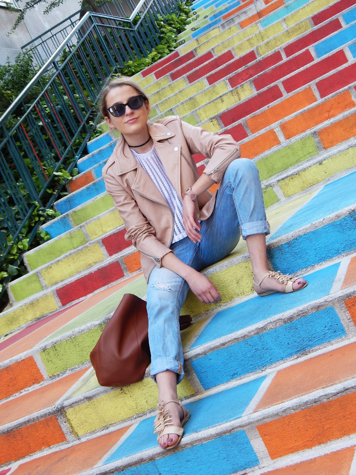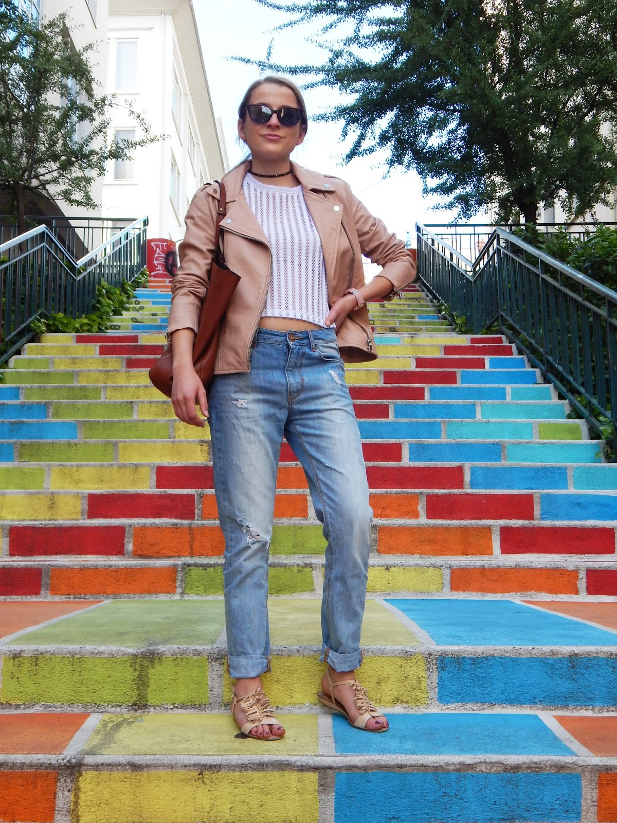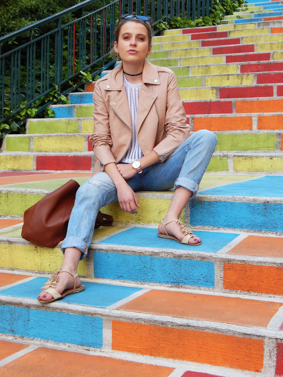 Perfecto/Leather jacket: Mango; Haut/Shirt: New Look; Jean: Pimkie; Sac:Bag: Zara; Sandales/Sandals: San Marina
