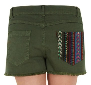 Short kaki imprimé ethnique sur poche arrière: 29,99€. Je n’ai pas de short kaki, et j’aime beaucoup celui-ci avec cette jolie couleur et cet imprimé sur la poche arrière.