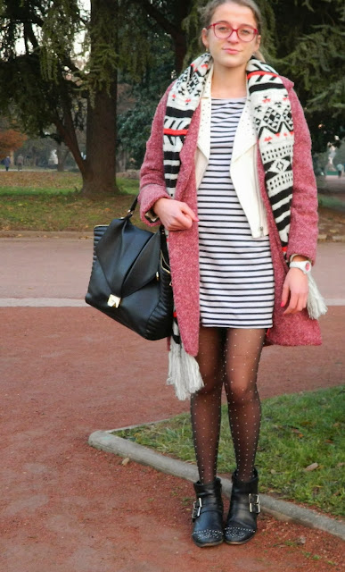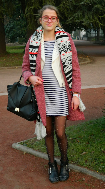 Très jolie tenue! J'adore ton écharpe!!