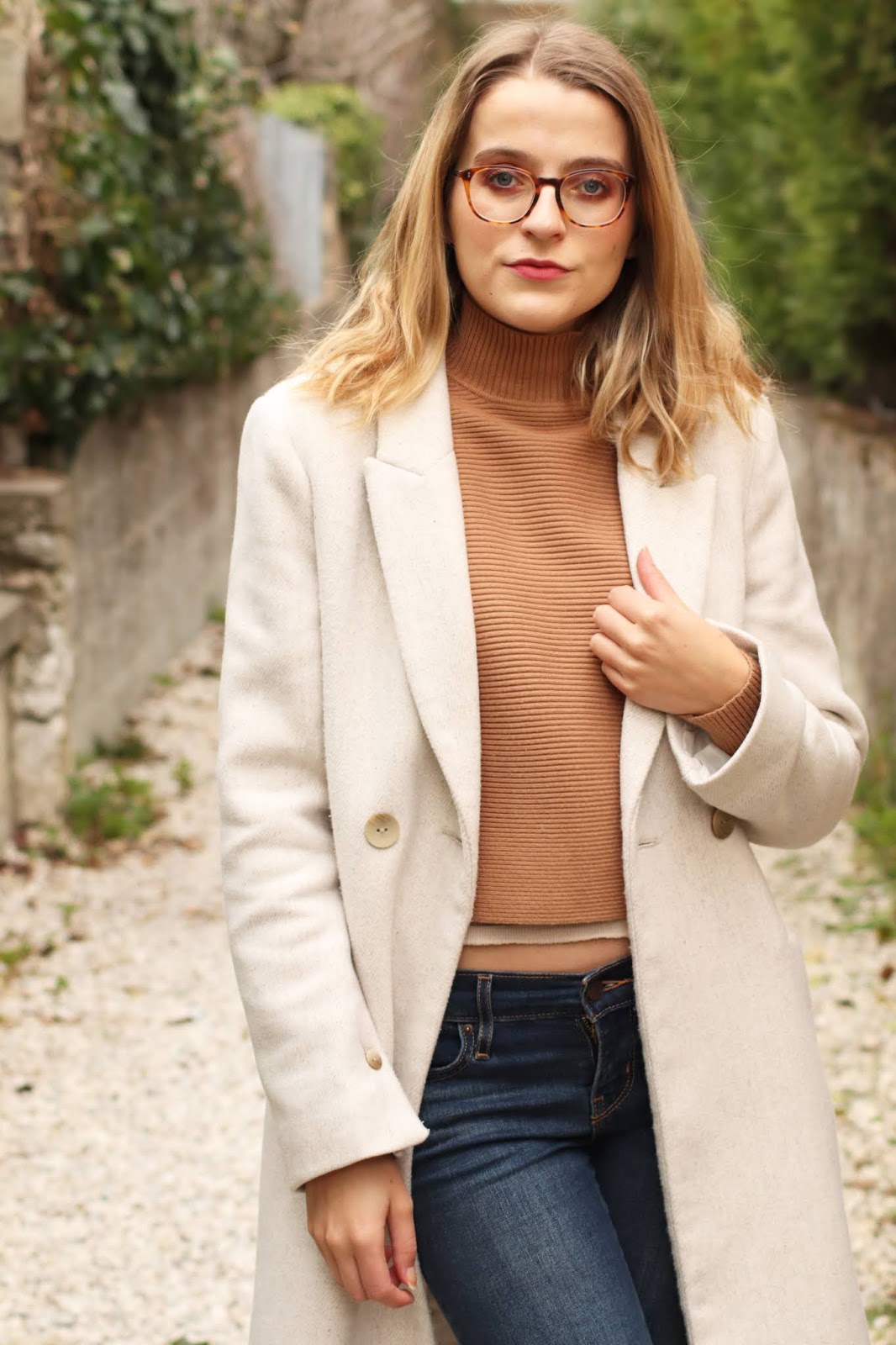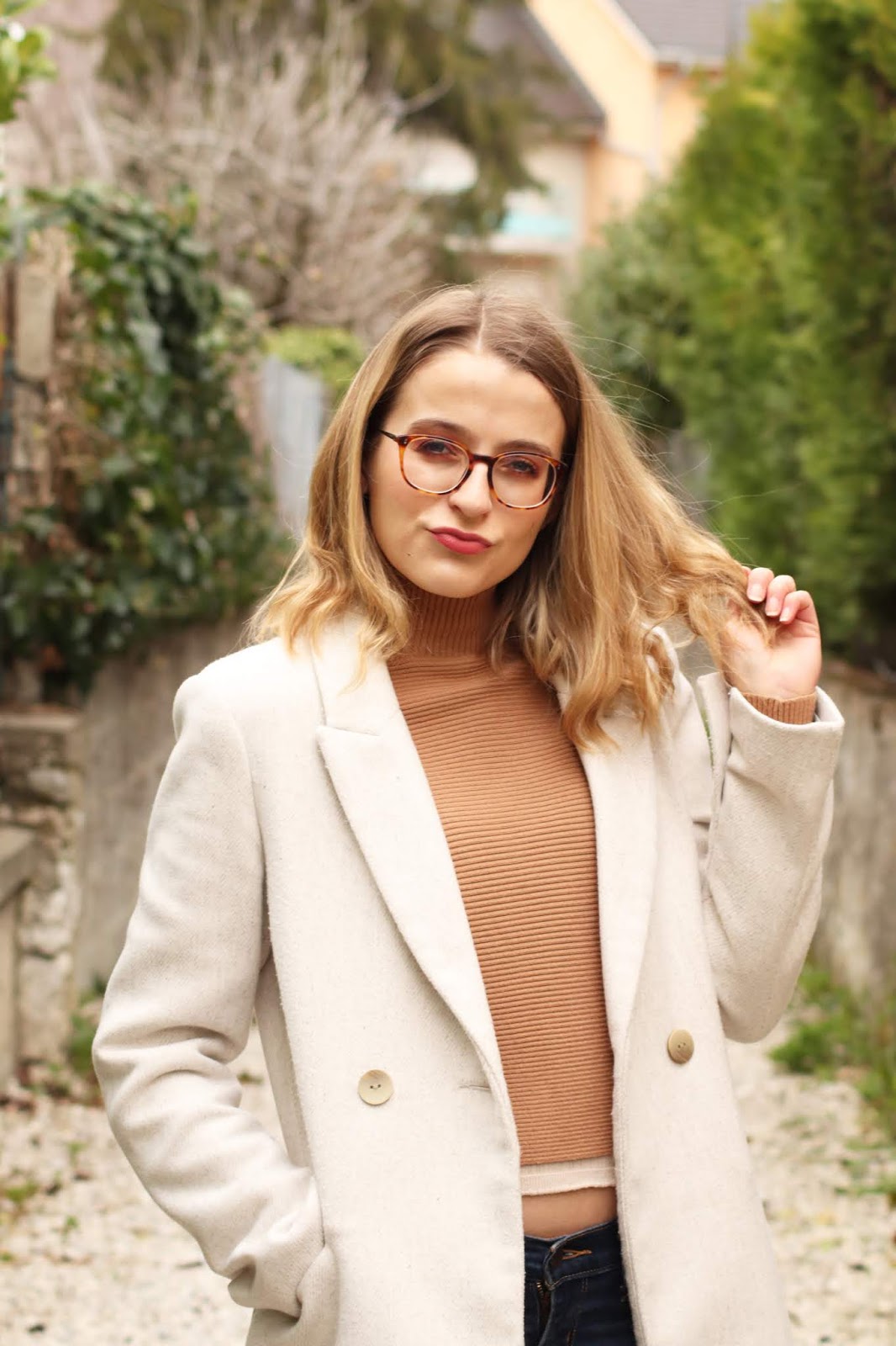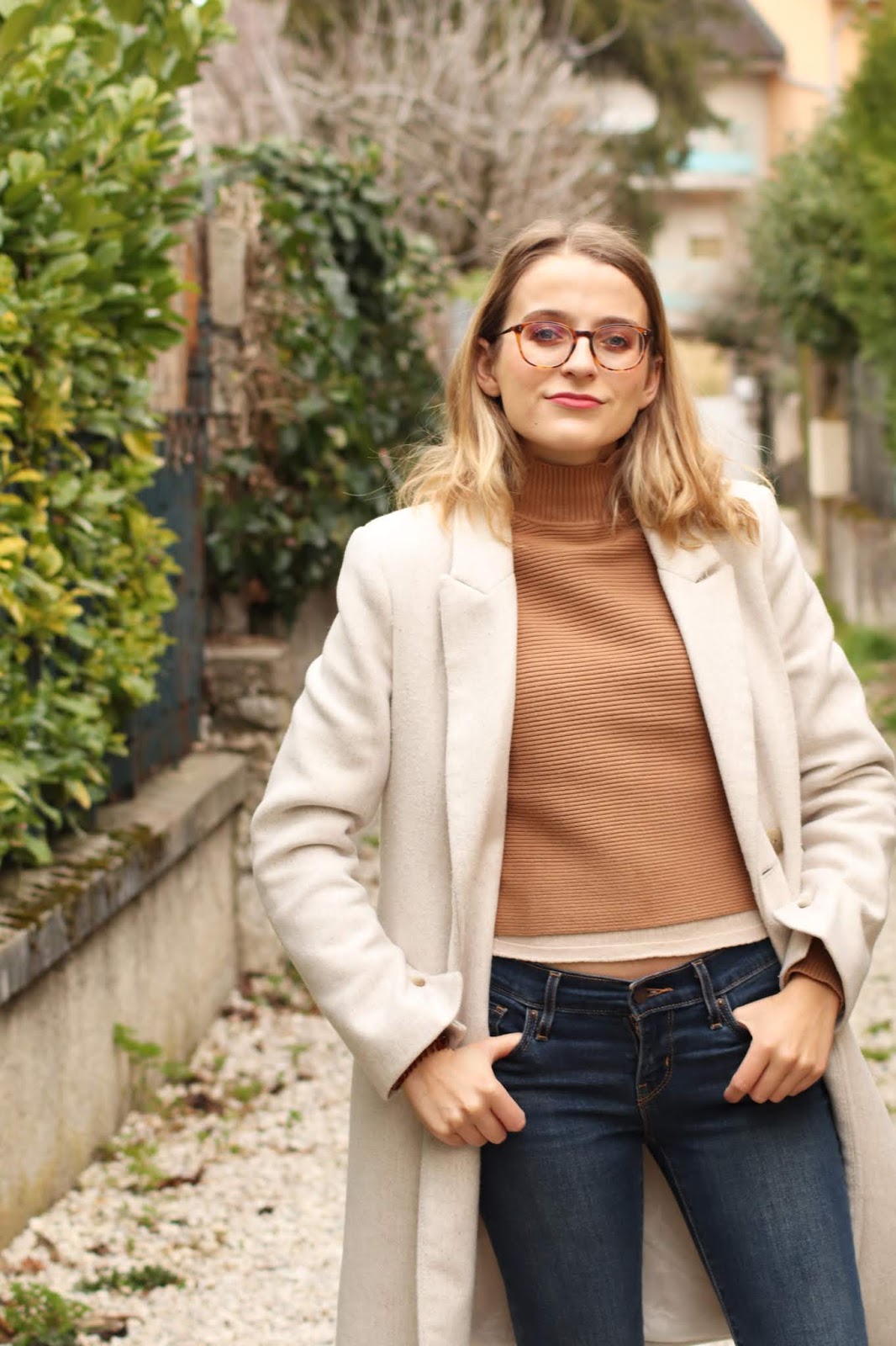 Je porte donc le manteau Mango que je m’étais acheté sur Vinted, je vous le montrais dans ce look