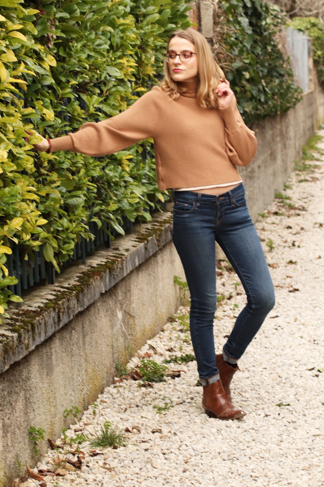 que j’ai pu porter quelques fois lors de cette fin d’hiver, et que j’aurai hâte de ressortir tellement que je l’aime. Je porte également mon pull Zara acheté l’an dernier que j’aime vraiment beaucoup trop, j’adore sa coupe et l’effet qu’il donne. Mon jean Levis acheté à l’outlet de Tokyo, mes bottines achetées au grand magasin Century 21 de New-York et me voilà.