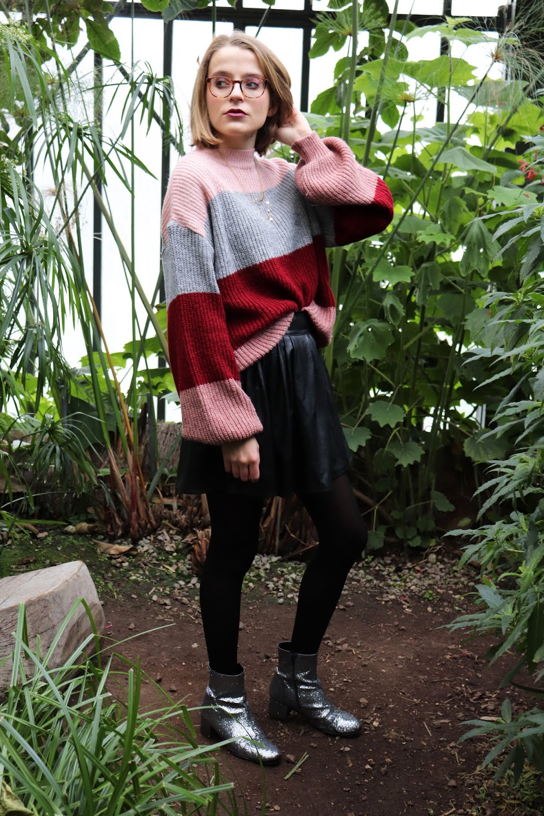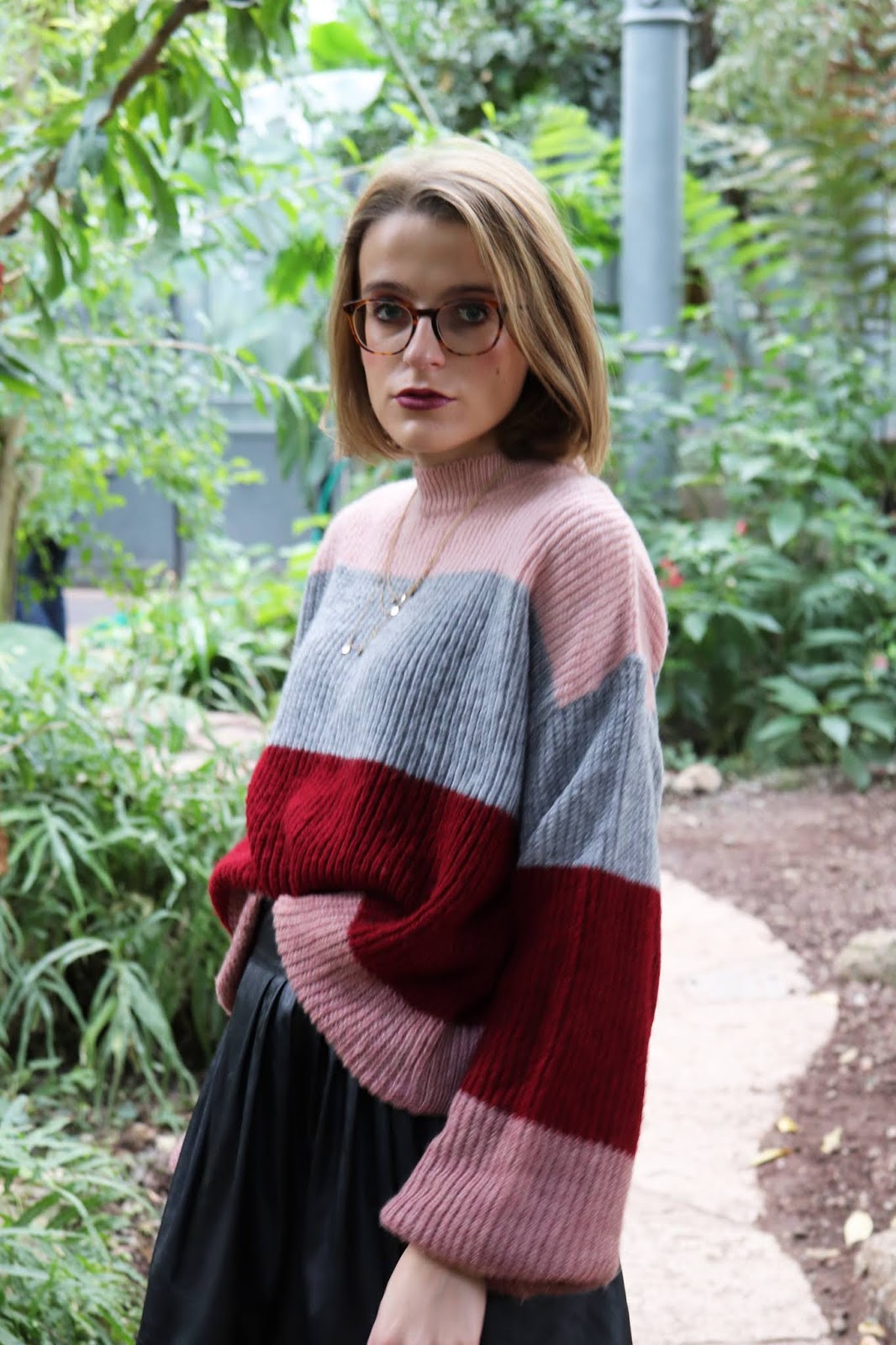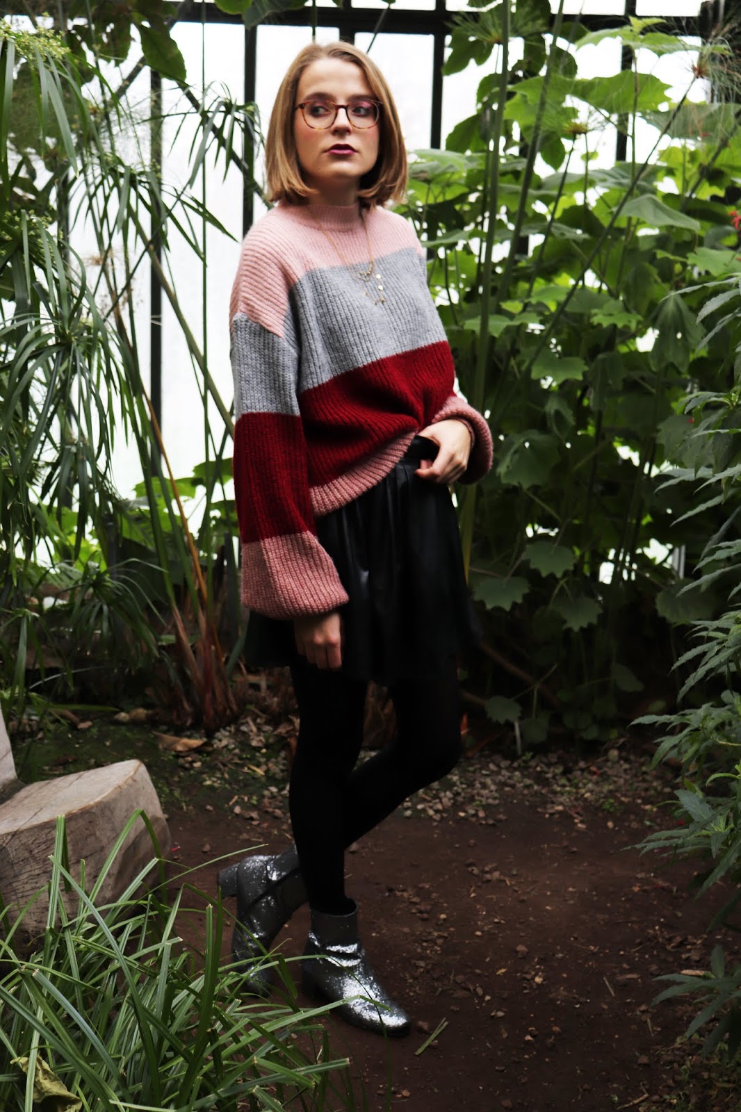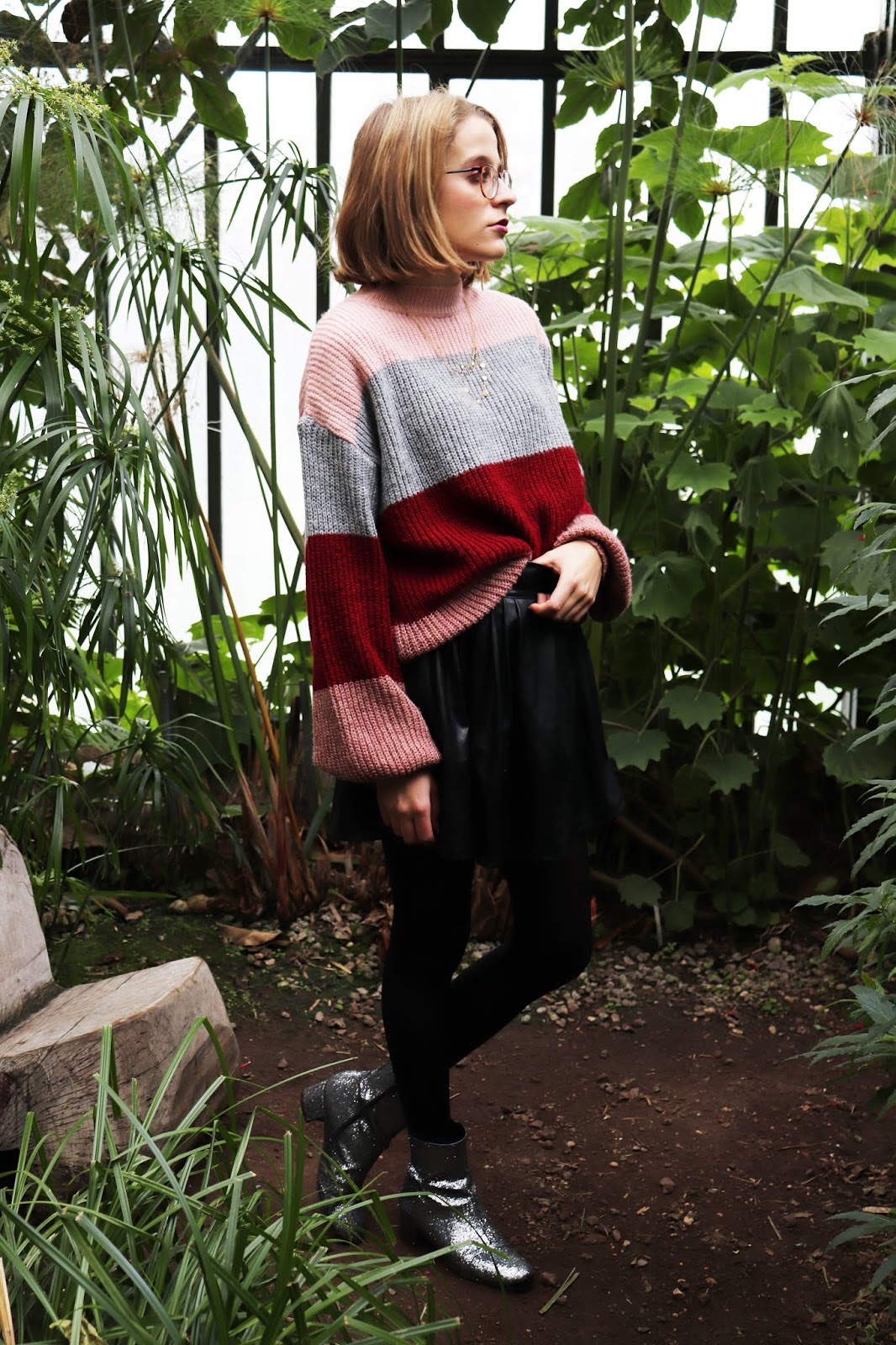 On continue la série de looks d’automne/hiver avec cette tenue que j’aime beaucoup trop, shootée dans la serre du parc de la Tête d’or à Lyon. On était partis pour prendre des photos en extérieur mais impossible avec le temps qu’il faisait… Et devinez quoi, quinze minutes après il faisait grand beau… Bref je suis quand même contente du décor et de cette série de photos. On apprend encore à manier l’appareil et j’ai eu quelques clichés floues, trop sombres ou trop clairs.