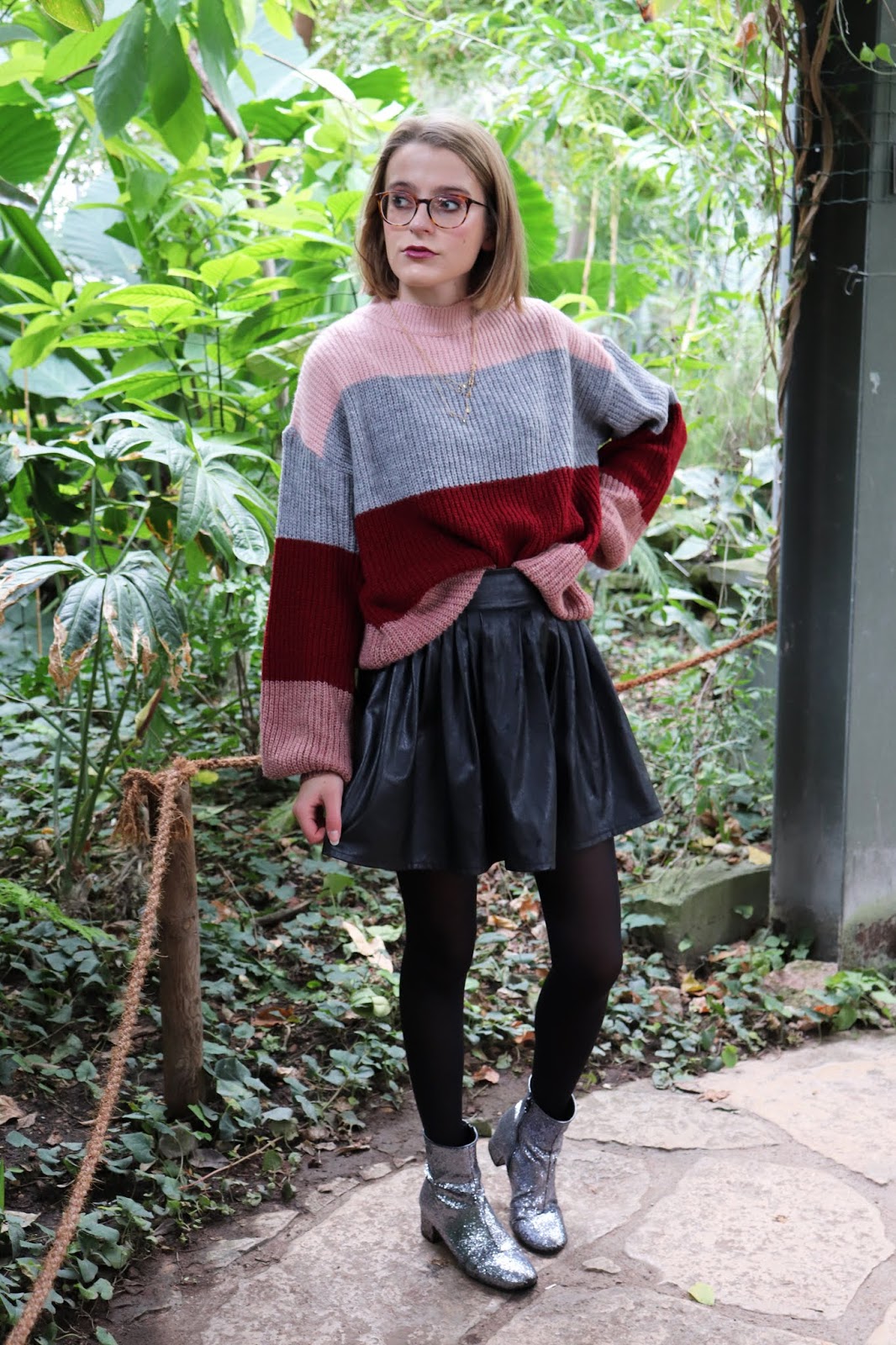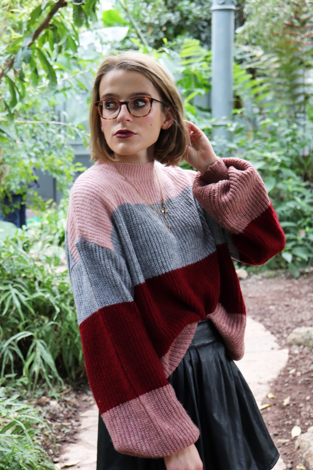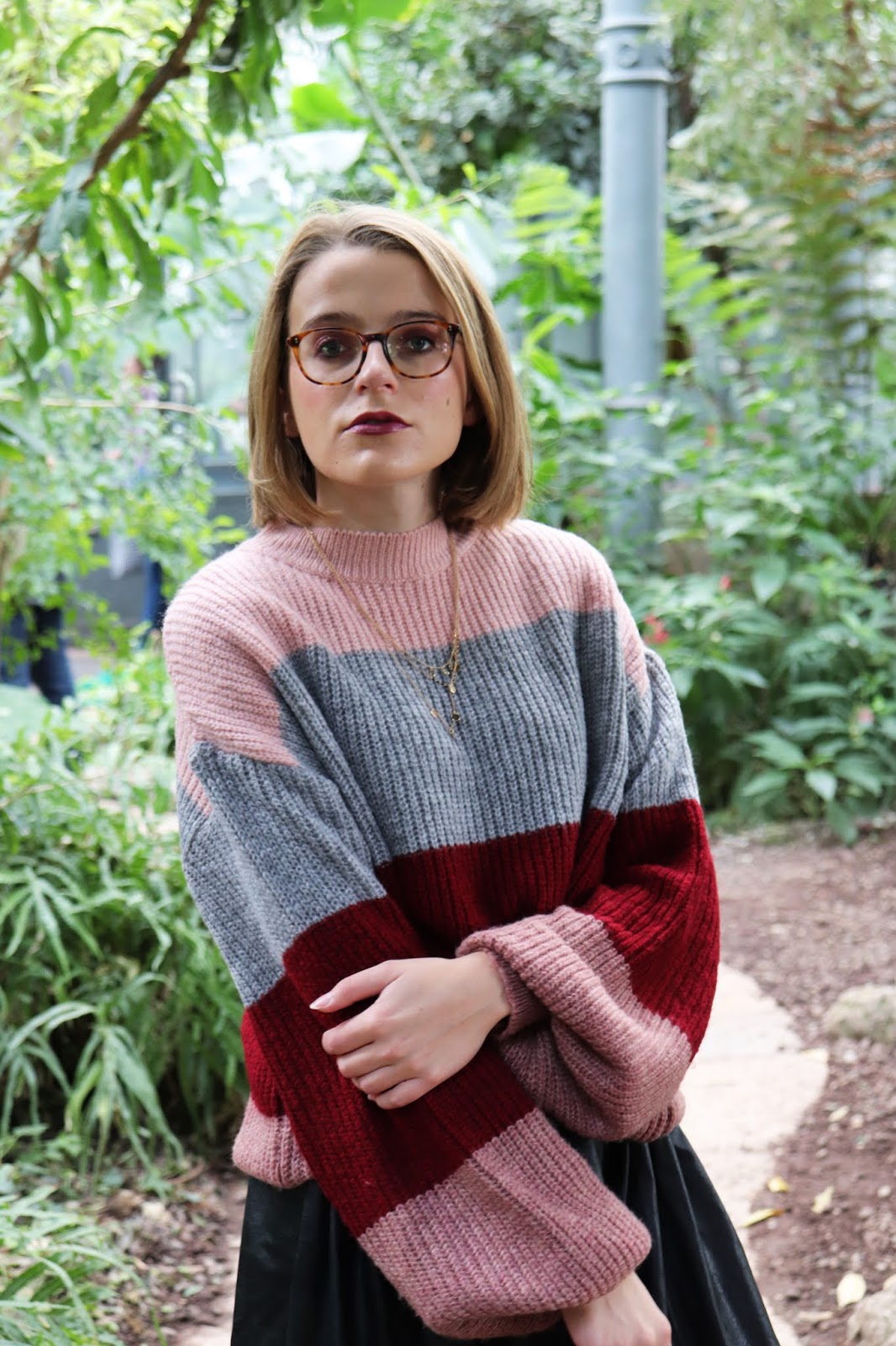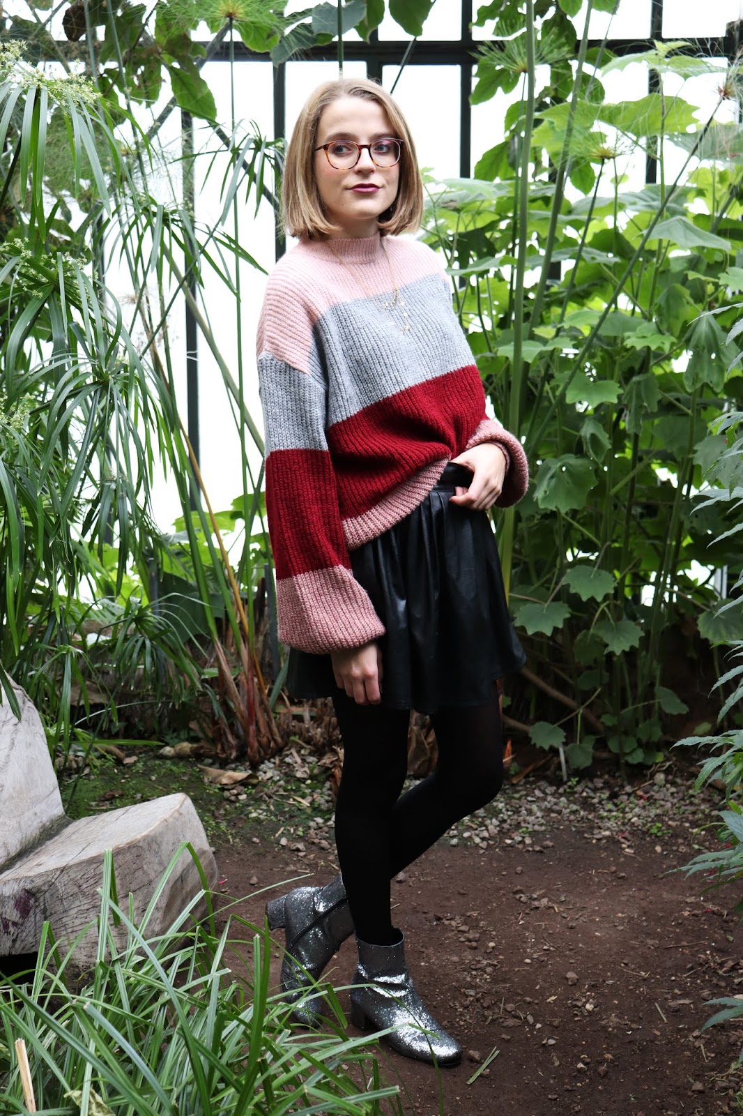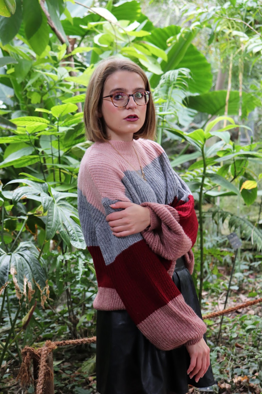 On continue la série de looks d’automne/hiver avec cette tenue que j’aime beaucoup trop, shootée dans la serre du parc de la Tête d’or à Lyon. On était partis pour prendre des photos en extérieur mais impossible avec le temps qu’il faisait… Et devinez quoi, quinze minutes après il faisait grand beau… Bref je suis quand même contente du décor et de cette série de photos. On apprend encore à manier l’appareil et j’ai eu quelques clichés floues, trop sombres ou trop clairs.