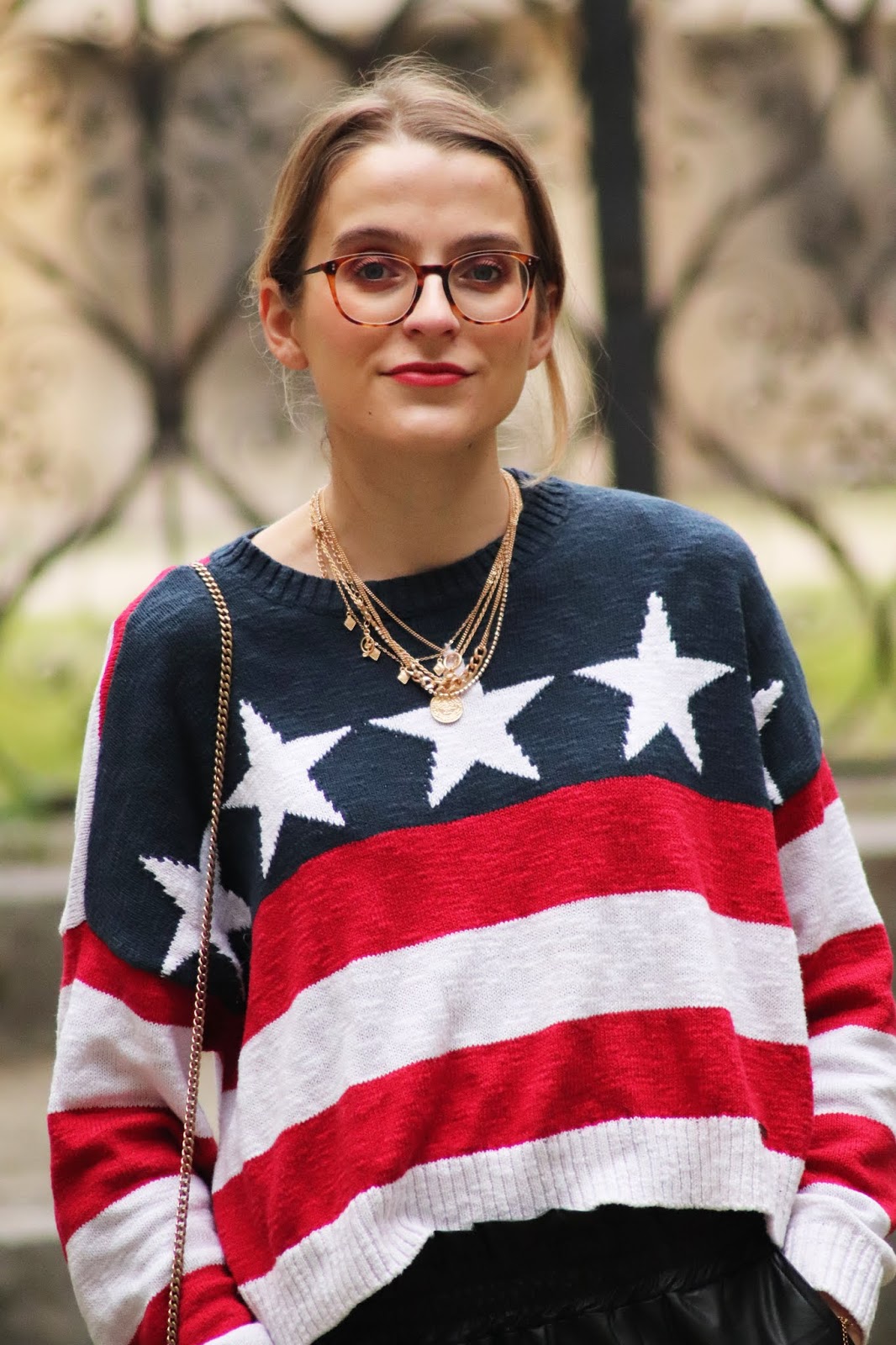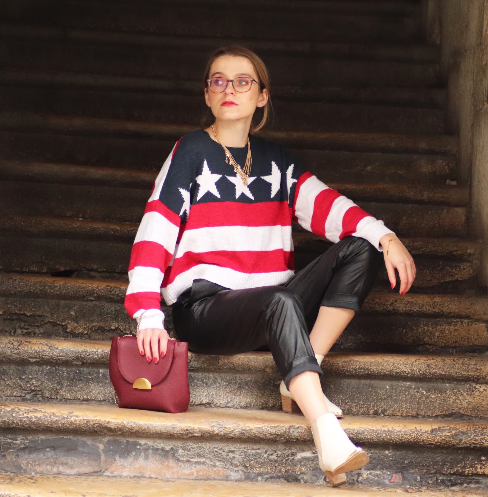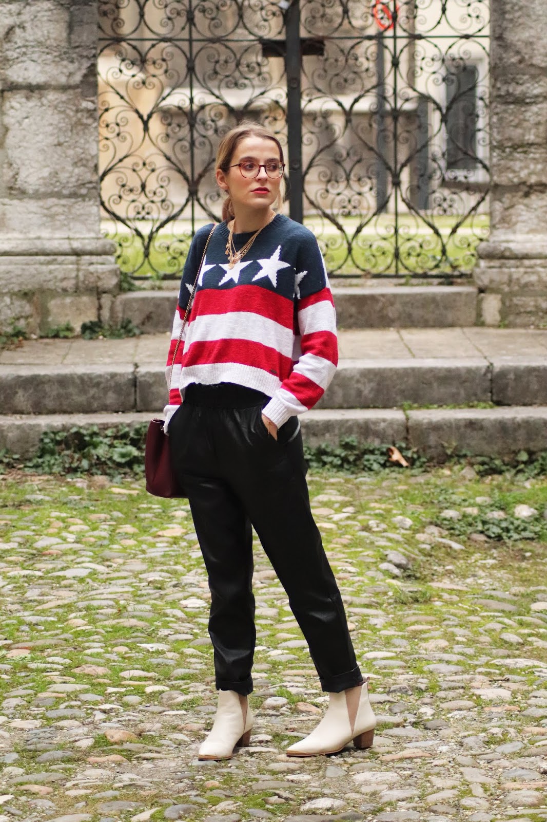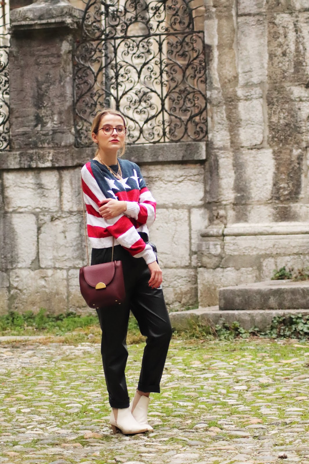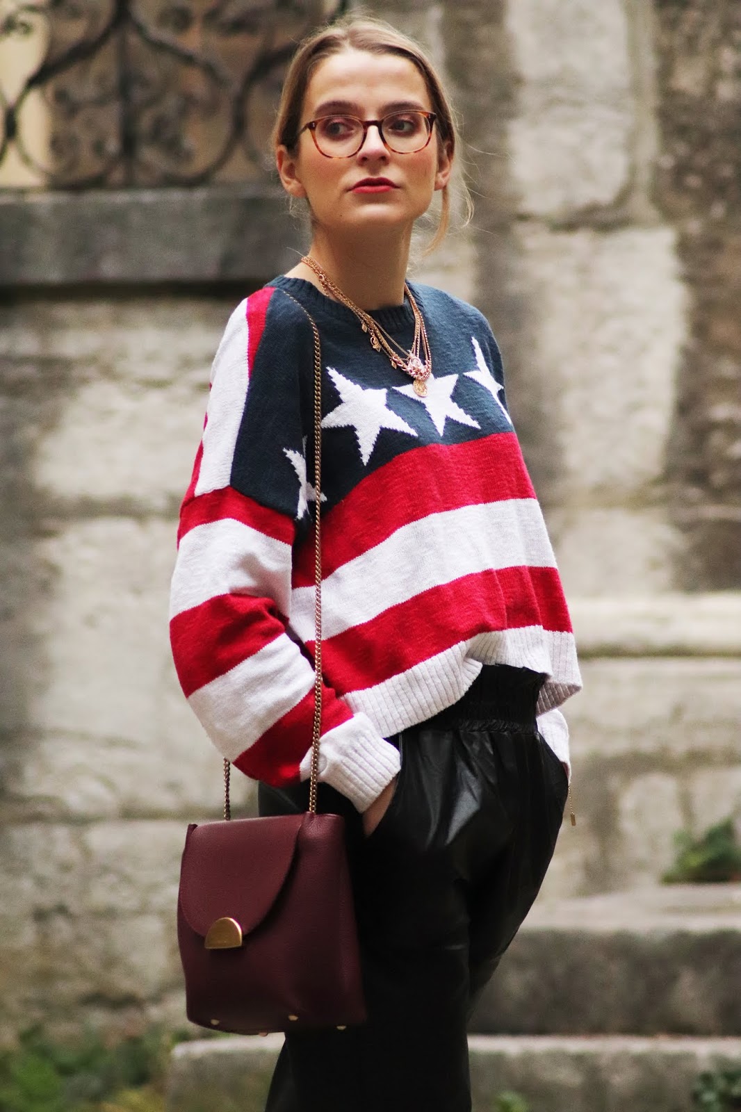 J’avais très envie de vous montrer certains nouvelles pièces de mon dressing, partagées dans mon dernier Haul. Si je vous dis que depuis j’ai fait quelques craquages chez Stradivarius vous me croyez? Thérapie post-rupture et parce que j’en avais envie tout simplement. Je vous montrerai donc tout ça plus tard. En attendant, j’avais acheté il y a plusieurs mois ce pull à l’imprimé drapeau américain chez Hollister dont je suis beaucouppp trop fan. Je le porte avec mon pantalon en similicuir du e-shop français Not your girl, chez qui j’ai une jolie robe genre vichy et ce top en satin.