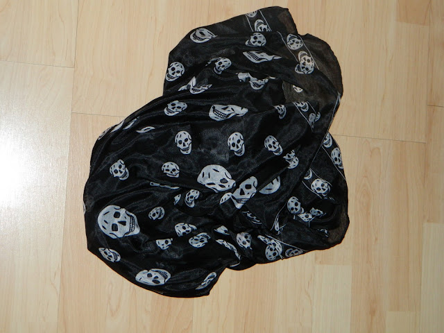 Et en prime le petit chèche imprimé tête de mort pour la somme modique de 2,5€ chez Stokomani, un déstockeur.