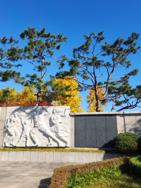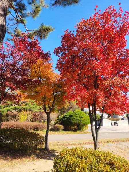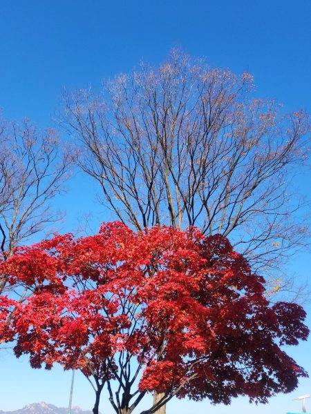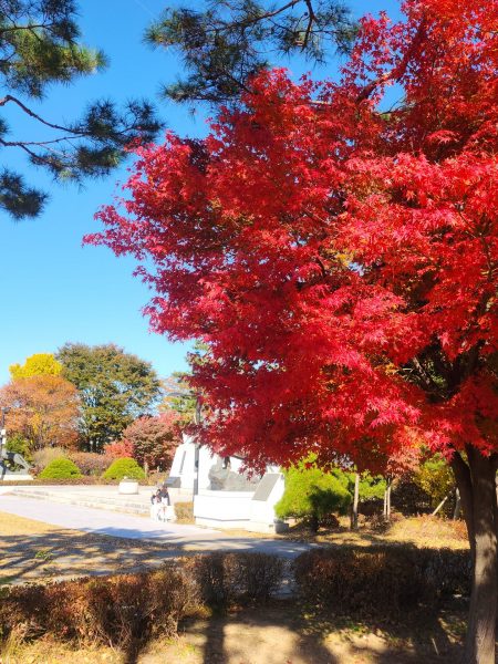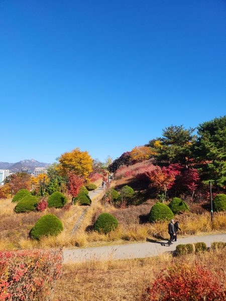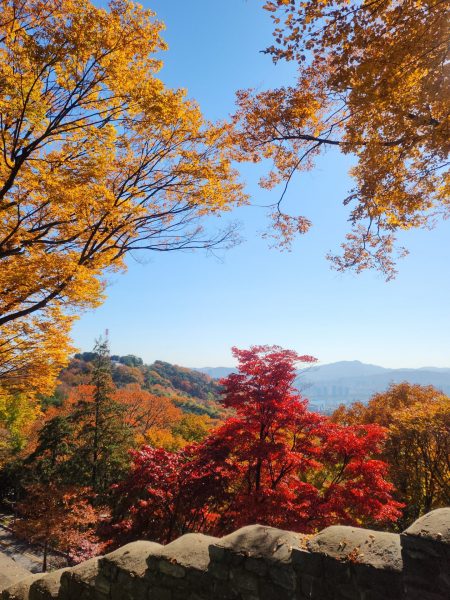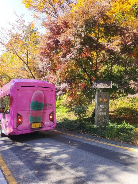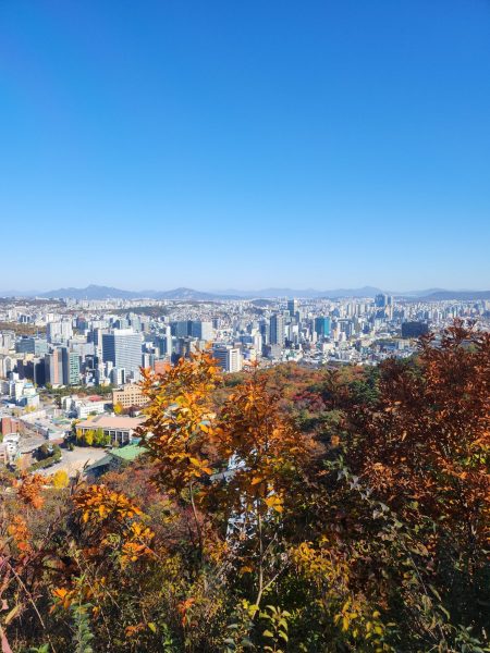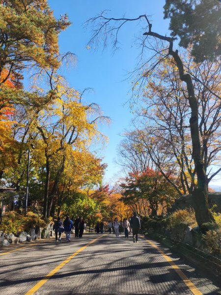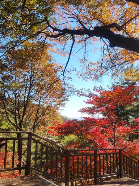Durant le début de notre trajet nous nous sommes faites accoster par deux hommes assez âgés, que l’on appelle en coréen les ajeossi, avec qui on a discuté pendant une dizaine de minutes. Une rencontre assez sympa, c’est souvent l’occasion de pouvoir rencontrer de nouvelles personnes et discuter. Sur la descente toujours, nous sommes tombées sur un groupe d’ajumma (femmes assez âgées), qui chantaient, tout en étant assises. C’était franchement une expérience trop sympa, elle nous ont expliqué qu’il s’agissait d’une chanson pour célébrer l’arrivée de l’automne. Pile à temps et l’endroit était clairement approprié.