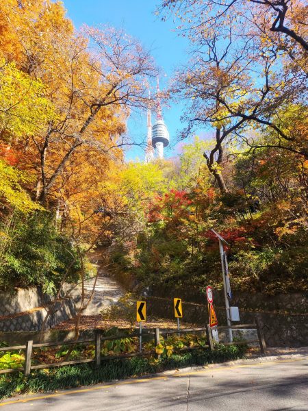 - Il existe plusieurs chemins pour accéder à la tour, l’un depuis la station de métro Hoeyeon et le parc Namsan, ou bien du côté Est vers la station de métro Chungmuro, regardez bien sur les applications de GPS les chemins possibles
