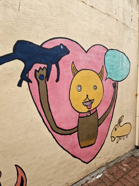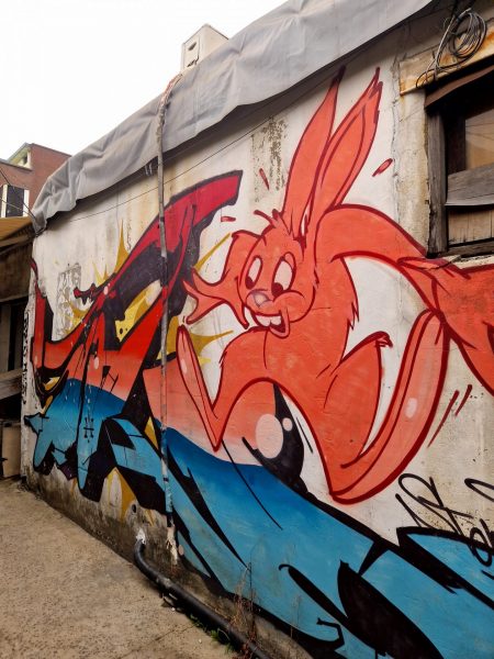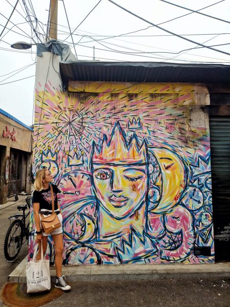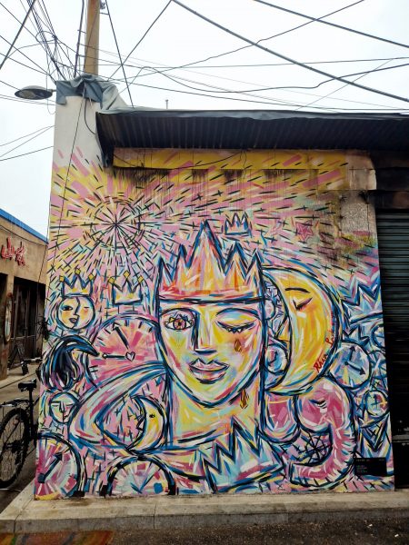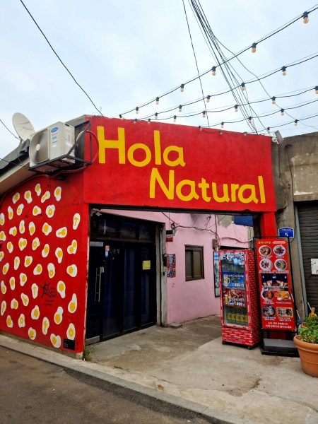 Nous avons eu de la chance avec la météo, nous nous sommes juste réfugiées dans un grand café lorsqu’il s’est mis à pleuvoir devant un bon chai chaud, avant de repartir, le Gallery Mullae pile à côté de jolies galeries et des murs tout colorés dont celui rouge Hola natural.