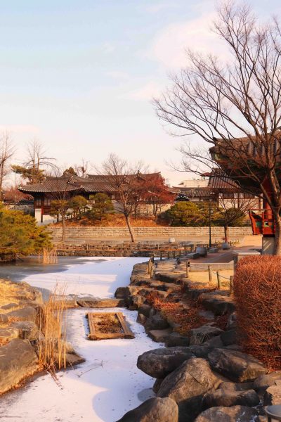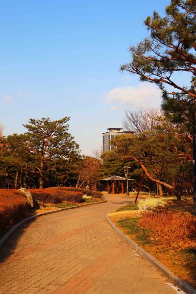 Toutes les photos dans cet article ont donc été prises en trois fois, la première avec le lac gelé vous le voyez, il faisait vraiment froid, il est resté gelé un moment. Les trois fois où j’y suis allée il y avait vraiment très peu de monde. C’est pourtant un endroit assez connu mais pas tant que ça encore je pense. De façon générale, l’avantage de Séoul c’est que c’est une ville tellement grande qu’il y a rarement des endroits complètement blindés. C’est agréable dans une ville si grande.