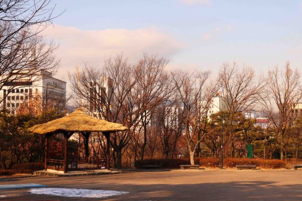 Juste après l’entrée, vous la verrez facilement, des personnes jouaient à des jeux traditionnels coréens, je les regardais amusée, sans vraiment comprendre comment ça se jouait mais ça avait l’air sympa. Les trois fois il faisait beau, j’étais donc vachement bien, et les photos sont jolies et rendent justice à cet endroit. De là, vous pouvez voir la tour Namsan qui est juste en dessus. Vous pouvez y grimper de cet endroit ou faire le contraire, aller à la tour d’abord, c’est vous qui voyez.