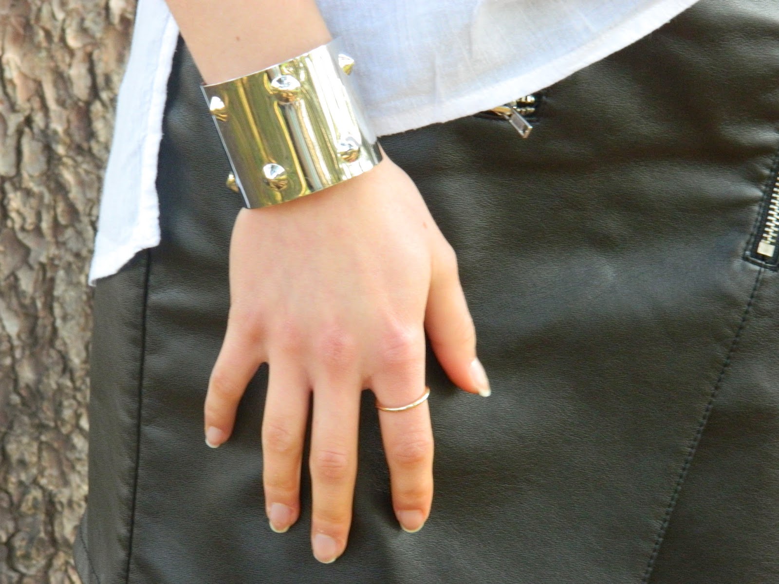 Trench/Trench coat: Caroll; Blouse/Shirt; Jupe/Skirt; Manchette/Bracelet and Bagues/Rings: H&M; Bottines/Booties: Vero Cuoio; Sac/Bag: Mango