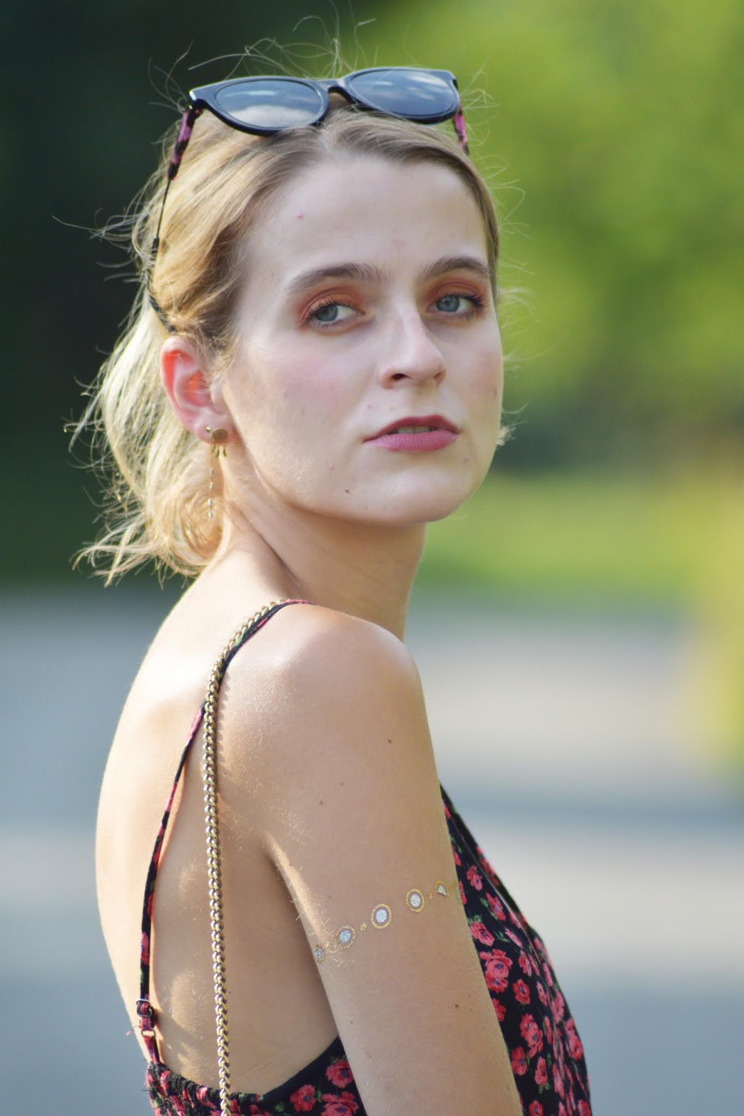 Robe/Dress: Stradivarius; Sac/Purse: Polene; Sandales/Sandals: Bronx; Tatouages/Tattoos: Be inked