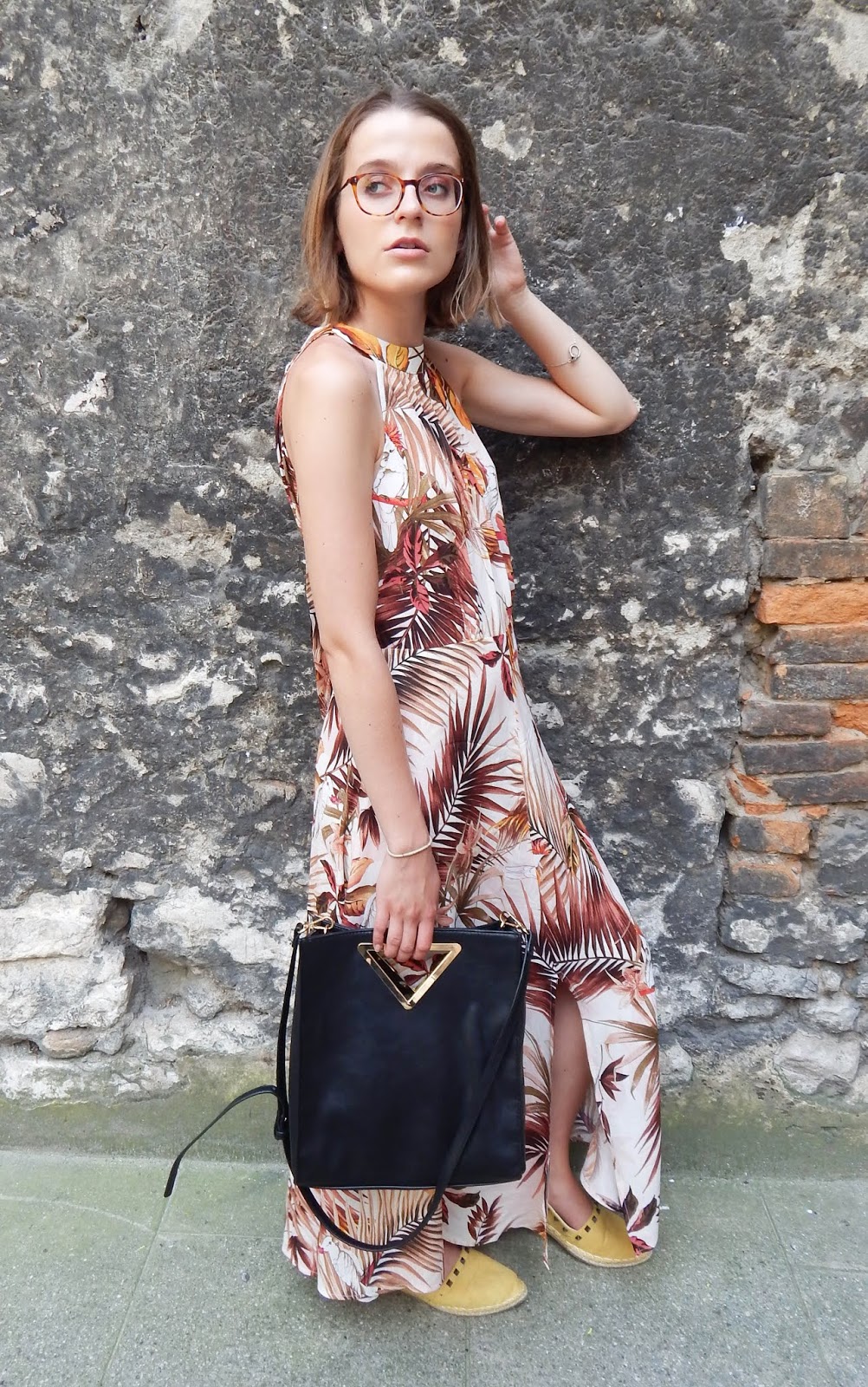 Gros coup de coeur pour cette robe longue tropicale de chez Mango, que j’ai trouvée dans les placards de ma mère. Ca faisait longtemps que je n’avais pas porté de robe, pourtant j’adore ça! J’ai osé le sans-soutifs, sachant que le dos de la robe est ouvert, et ça n’aurait pas été joli si j’en avais mis un.