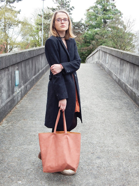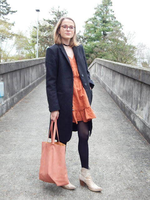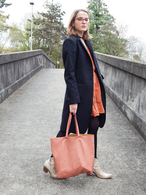 Manteau/Coat: IKKS; Robe/Dress: JCL chez Village market; Choker: New Look; Sac/Bag: La Halle; Bottines/Booties: Paprika