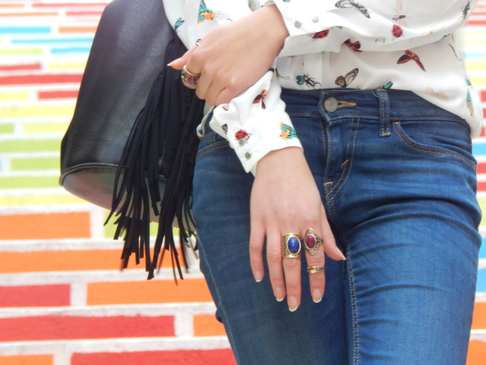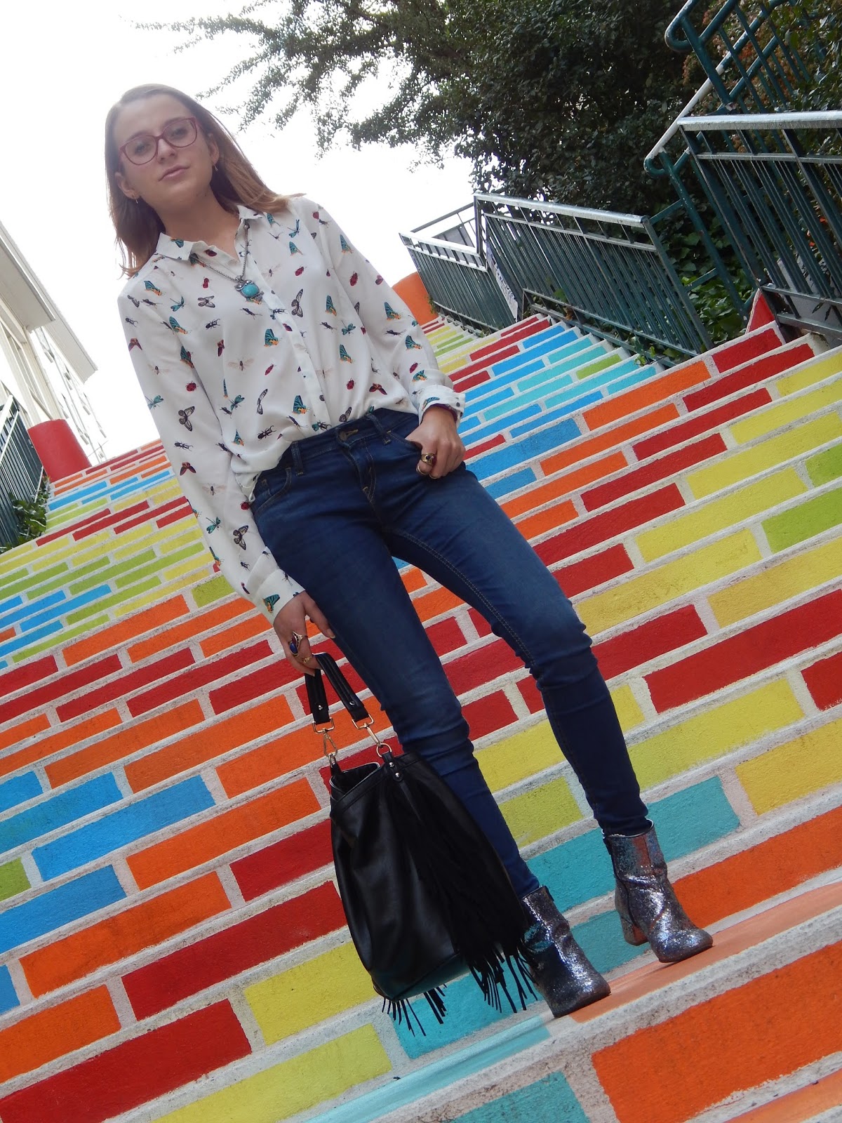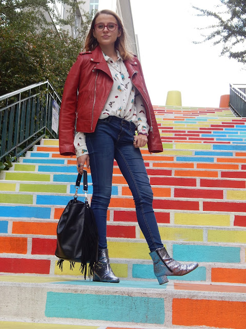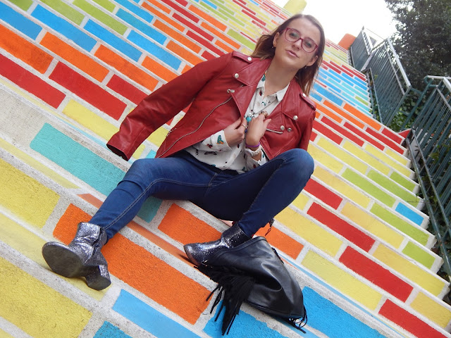 Veste/Jacket: Schott NYC; Chemise/Shirt: Pimkie; Collier/Necklace: Barcelone; Jean: Levis; Sac/Bag: Jennyfer; Bagues/Rings: Primark; Bottines/Booties: Texto