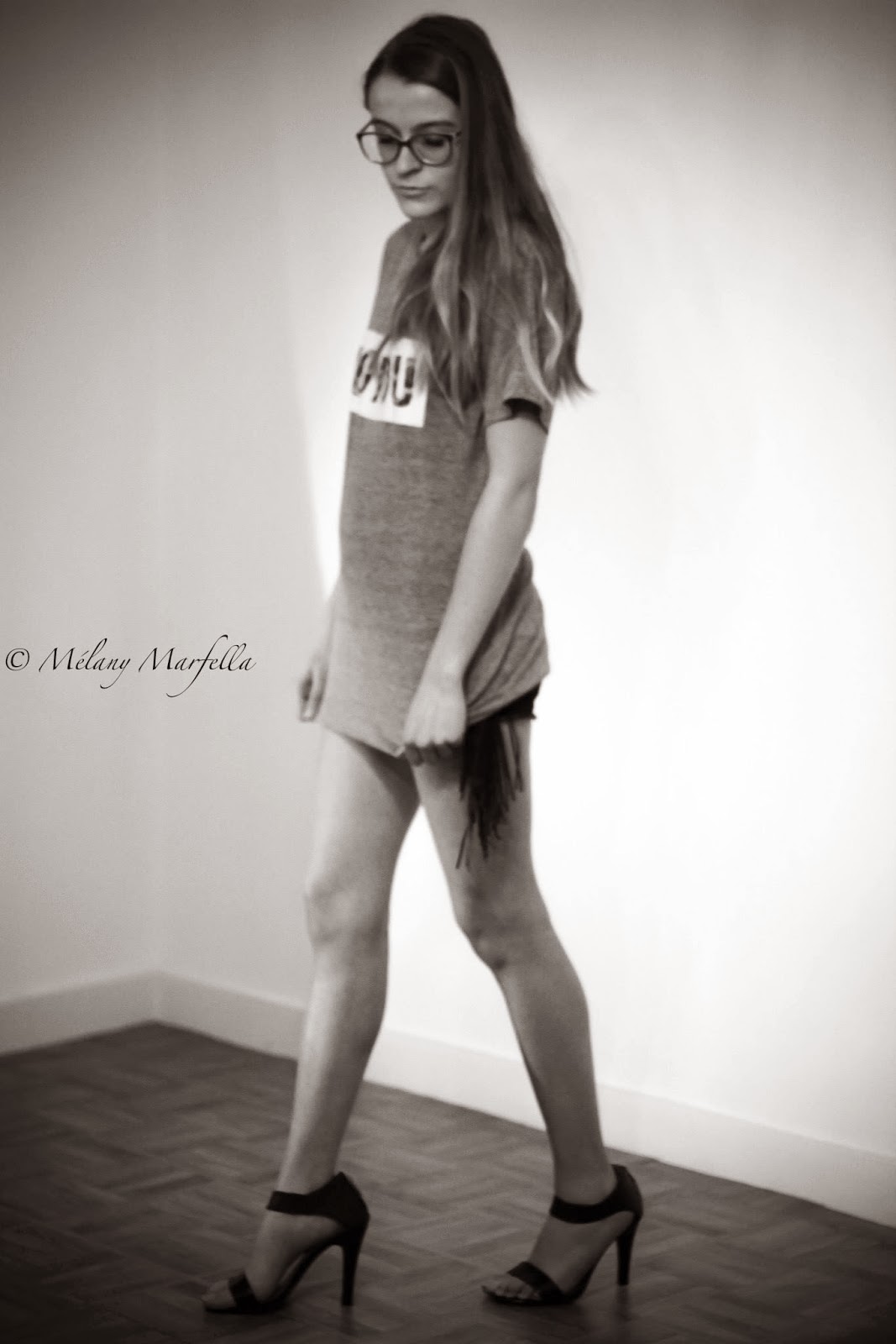 Je porte: Une brassière Jennyfer, un teddy New Yorker et un short à franges H&M