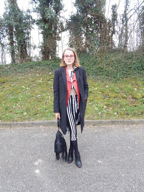Manteau/Coat: IKKS; Perfecto: Schott NYC; Robe/Dress: Boohoo; Sac/Bag: H&M; Bottines/Booties: Jennyfer