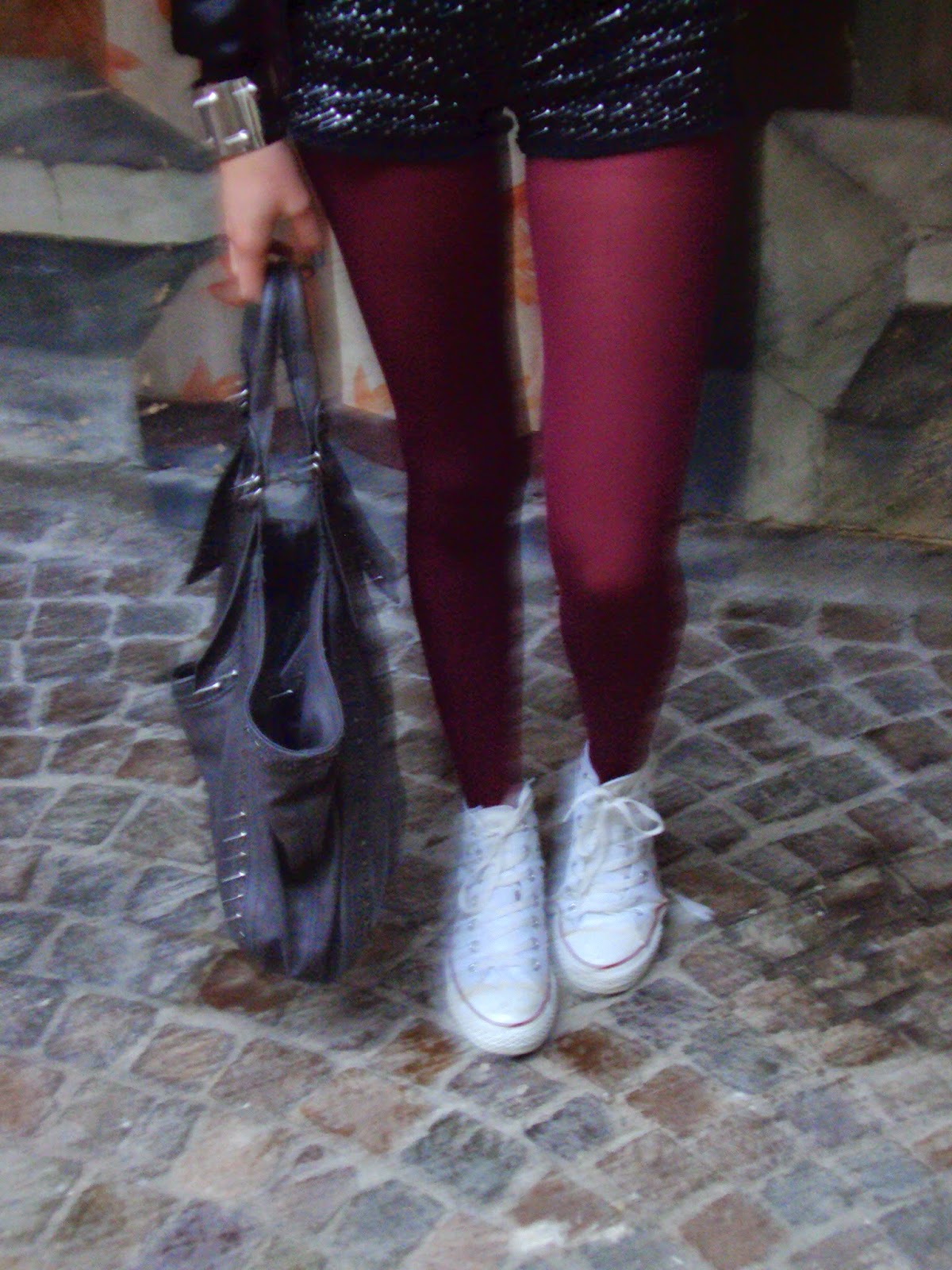 Teddy/Jacket: New Yorker; Haut/Shirt; Collier/Necklace: Brandy Melville;Short; Manchette/Bracelet: H&M; Collants/Tights: Le Bourget; Sac/Bag: Galeries Lafayette; Vernis/Nail polish: Etam; Converse ( achetées à Rome);