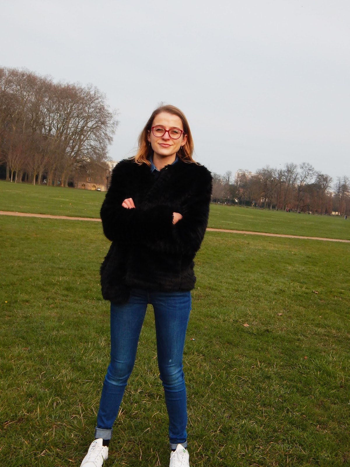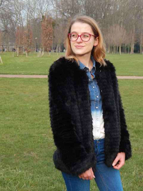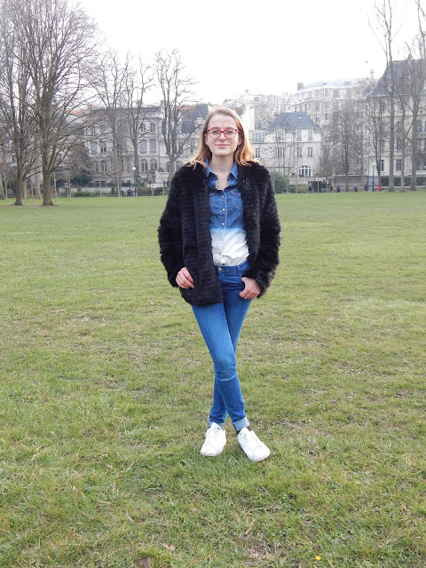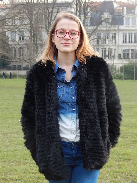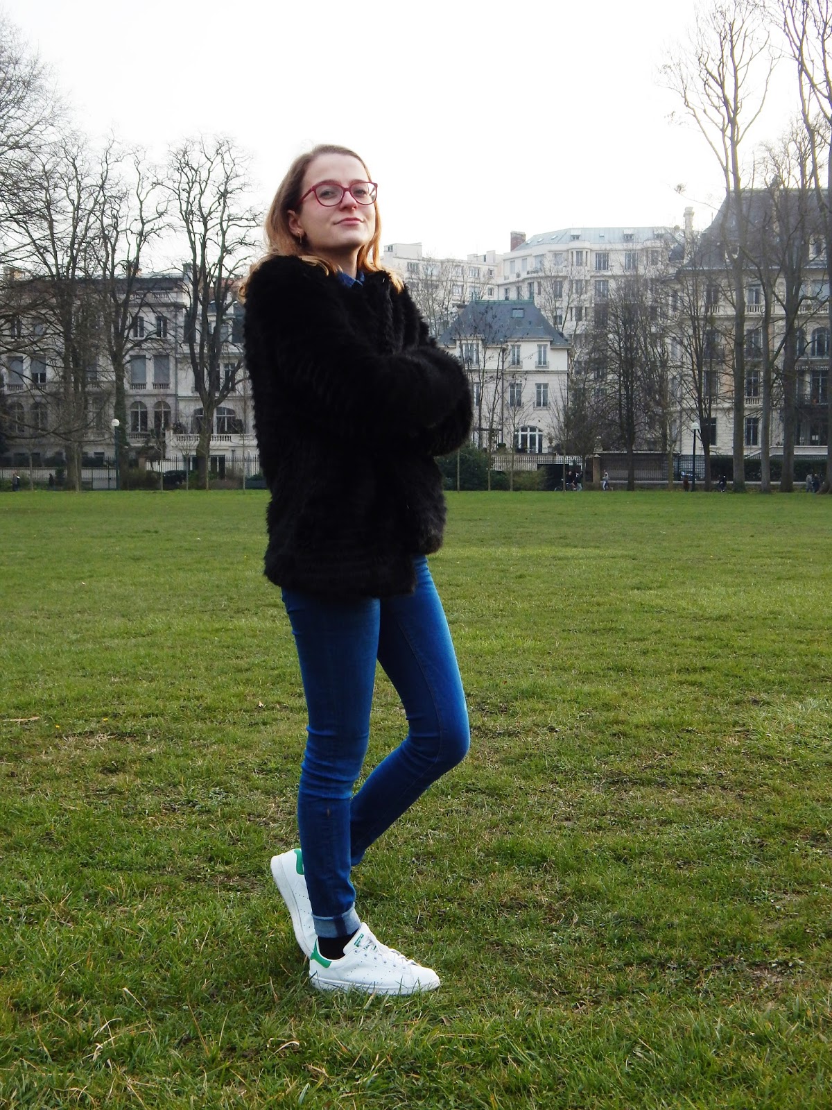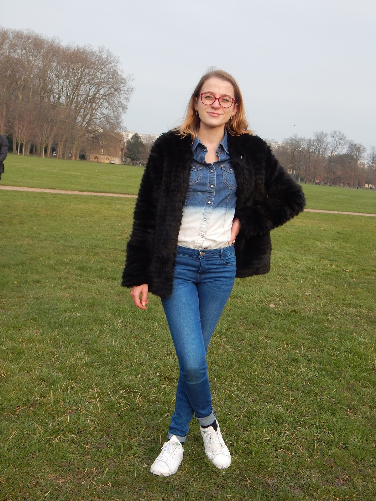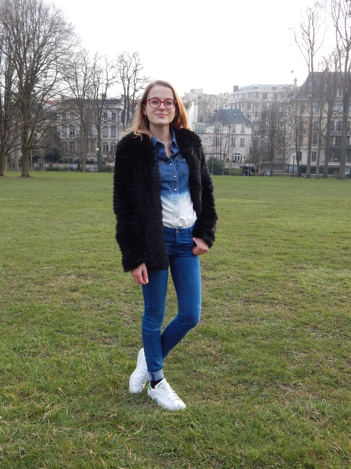 Veste/Faux fur: Pimkie; Chemise/Shirt: H&M; Jean: Zara; Baskets/Sneakers: Stan Smith
