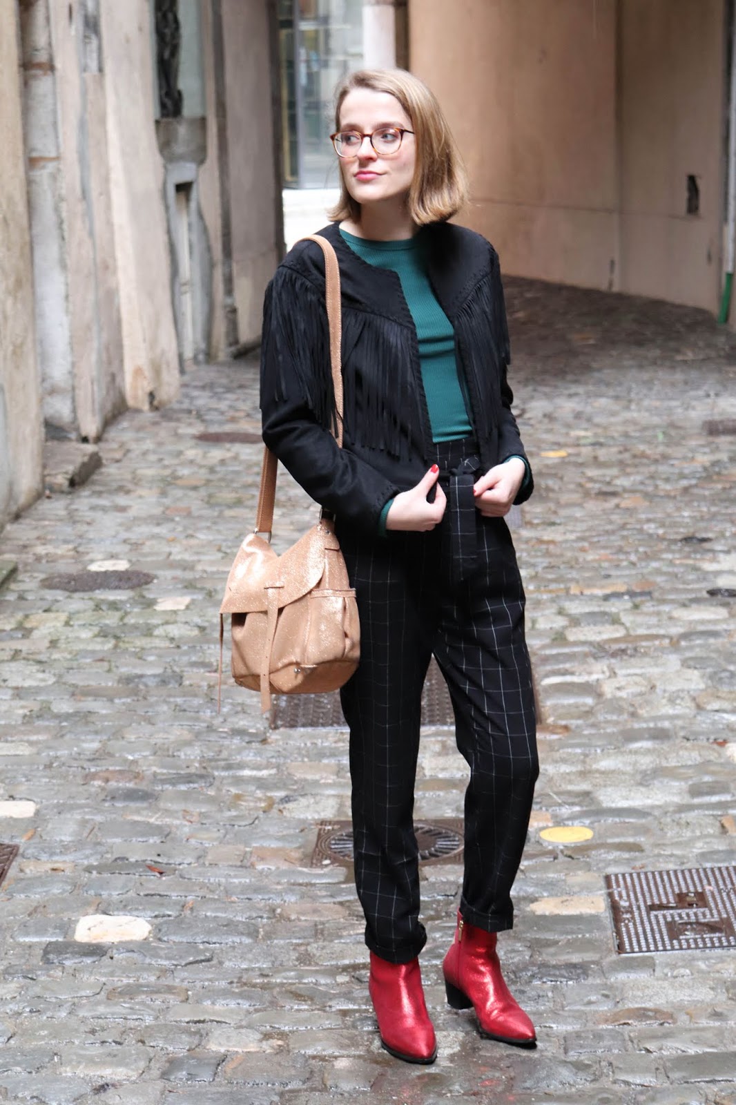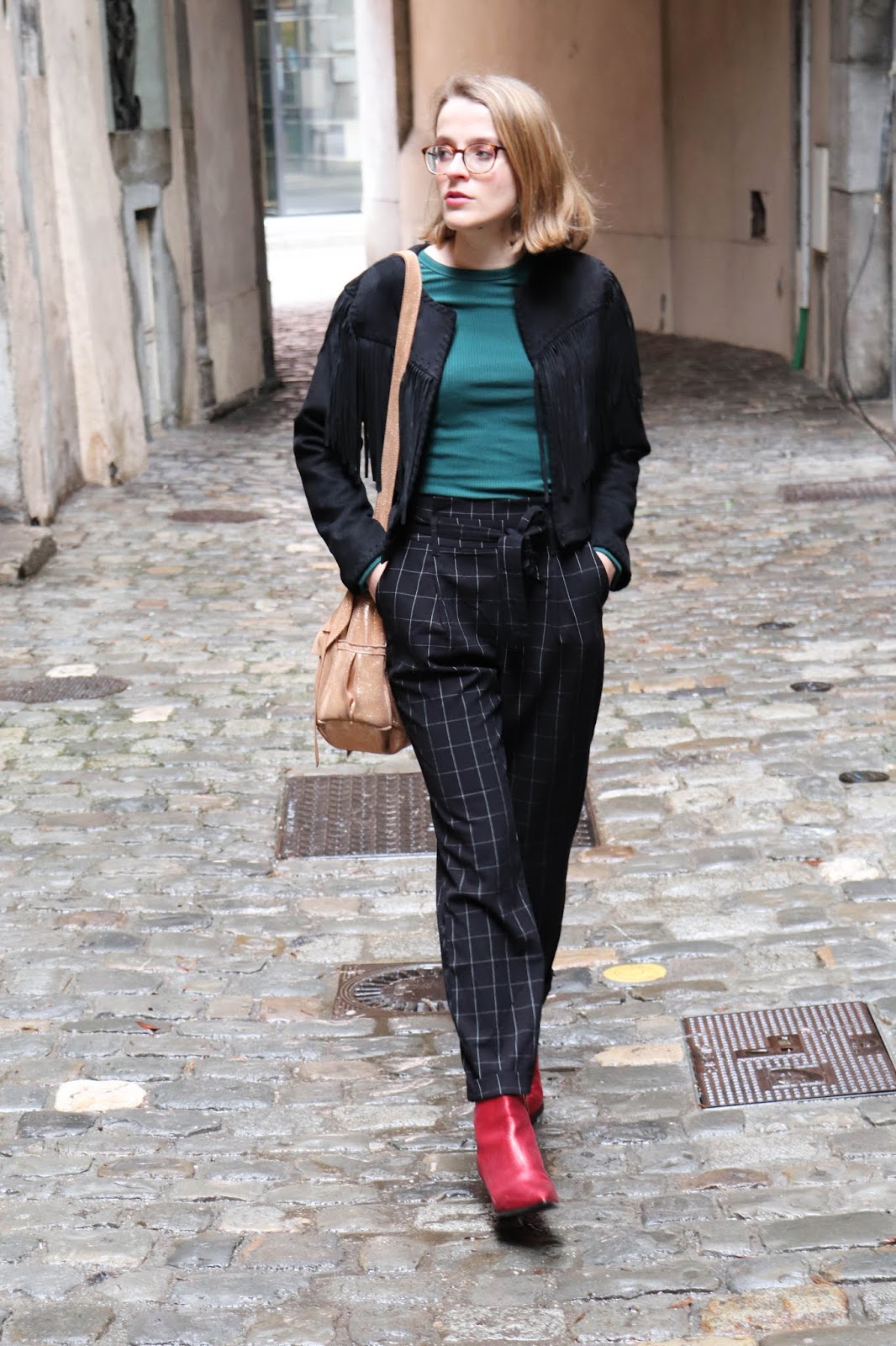 Veste/Jacket; Haut/Shirt; Pantalon/Pants: Stradivarius, Sac/Purse: Mila Louise; Bottines/Boots: Bocage
