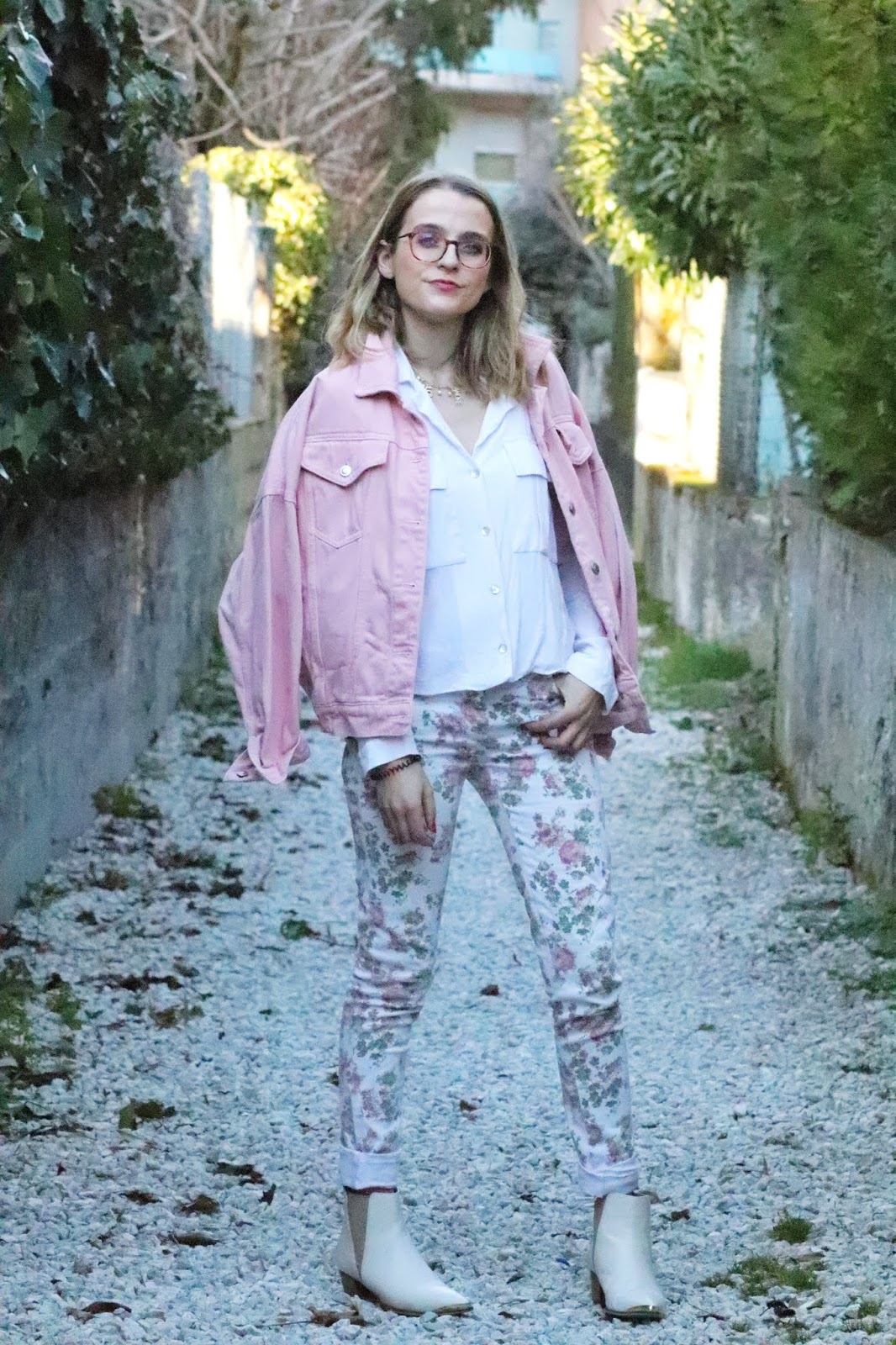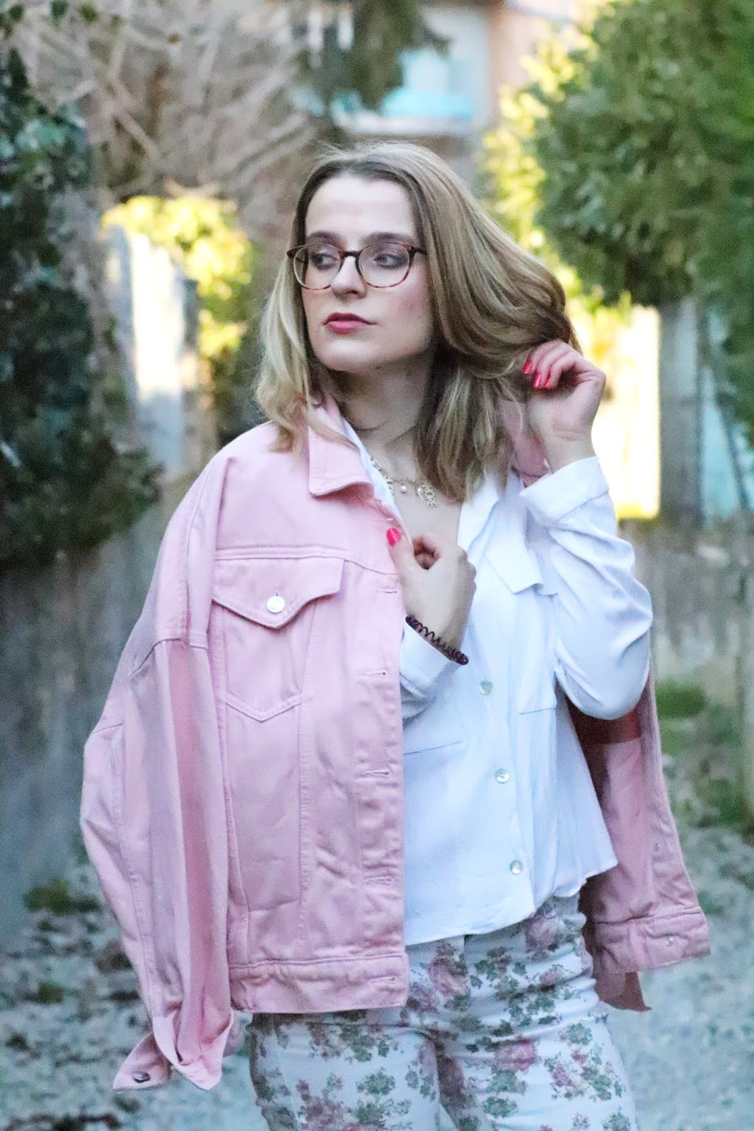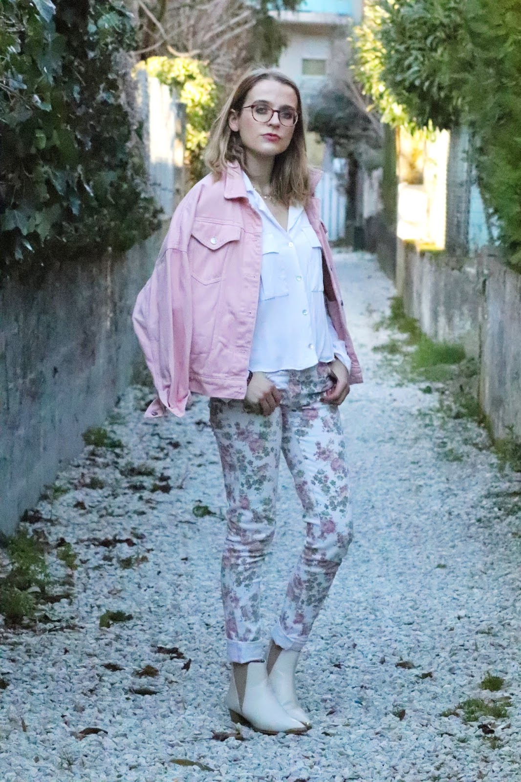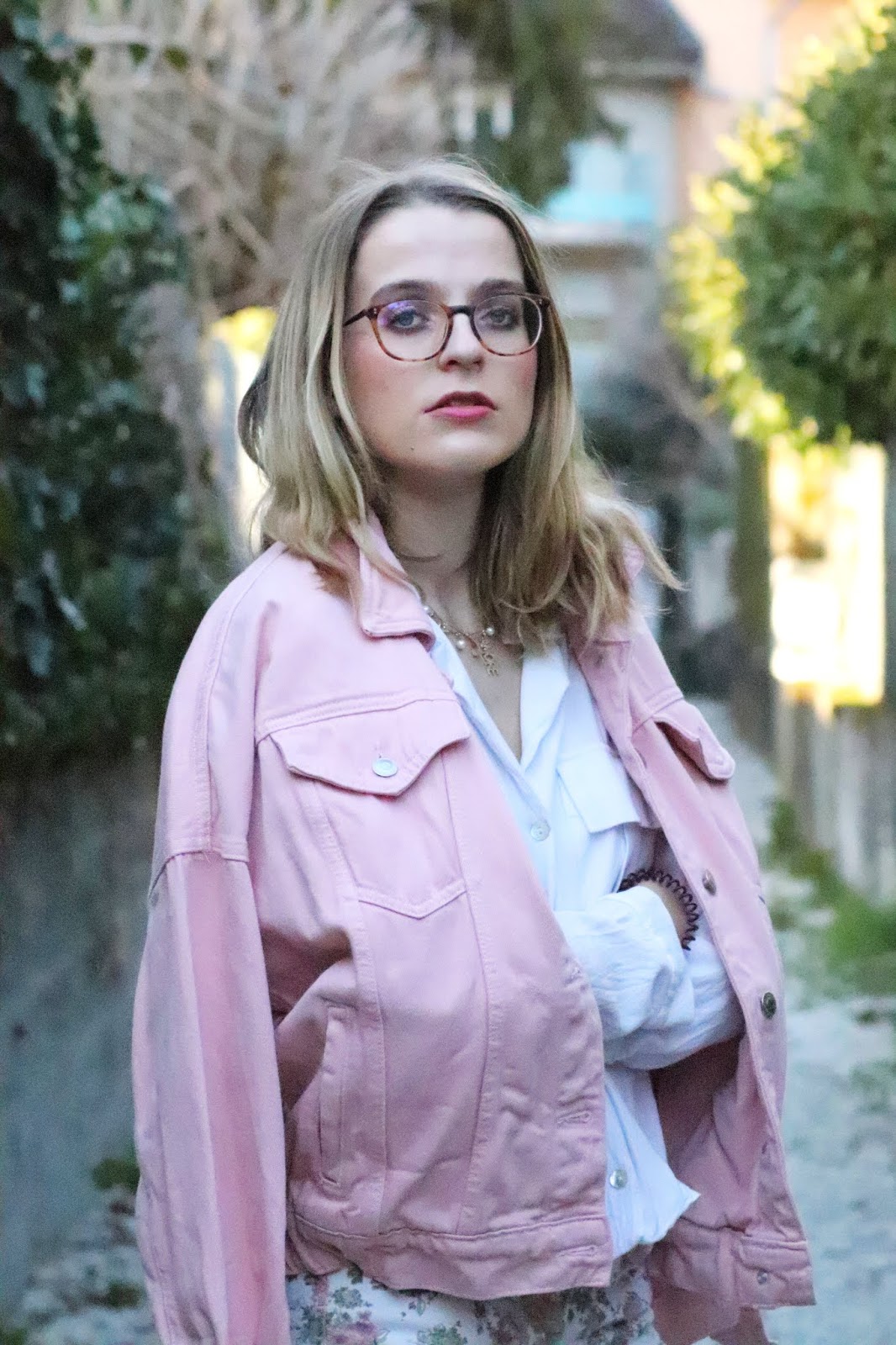 Un petit look bien printanier en ce milieu de semaine, faut dire que les températures étaient beaucoup trop agréables pour se priver de porter des tenues plus légères. Il faisait quasiment 20 degrés chez nous ce qui est assez dingue faut le dire… J’avais trop envie de ressortir cette veste en jean oversize rose shoppée l’année dernière chez mon fournisseur officiel, Stradivarius. Mon jean fleuri que j’ai maintenant depuis des annééééées littéralement, mais que j’aime toujours autant. Mes bottines blanches pour encore plus forcer l’esprit printemps et puis voilà! J’espère que ces photos faites par mon amie Kelly vous plairont!
