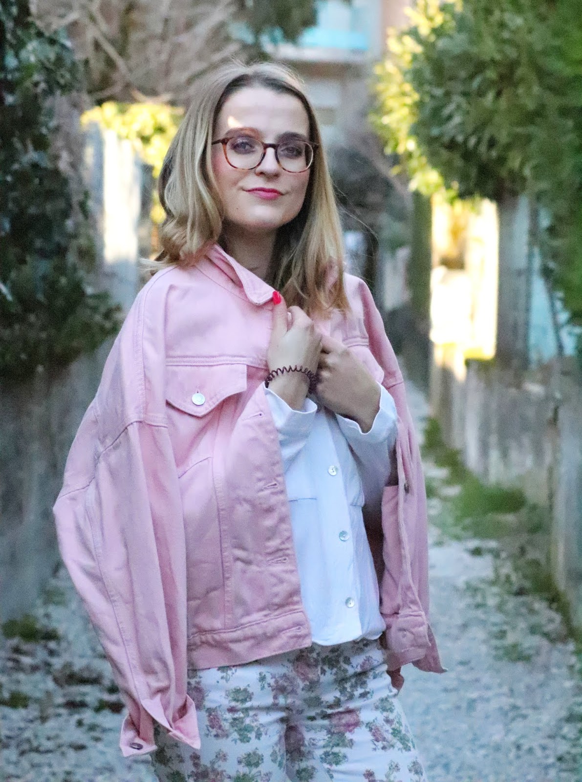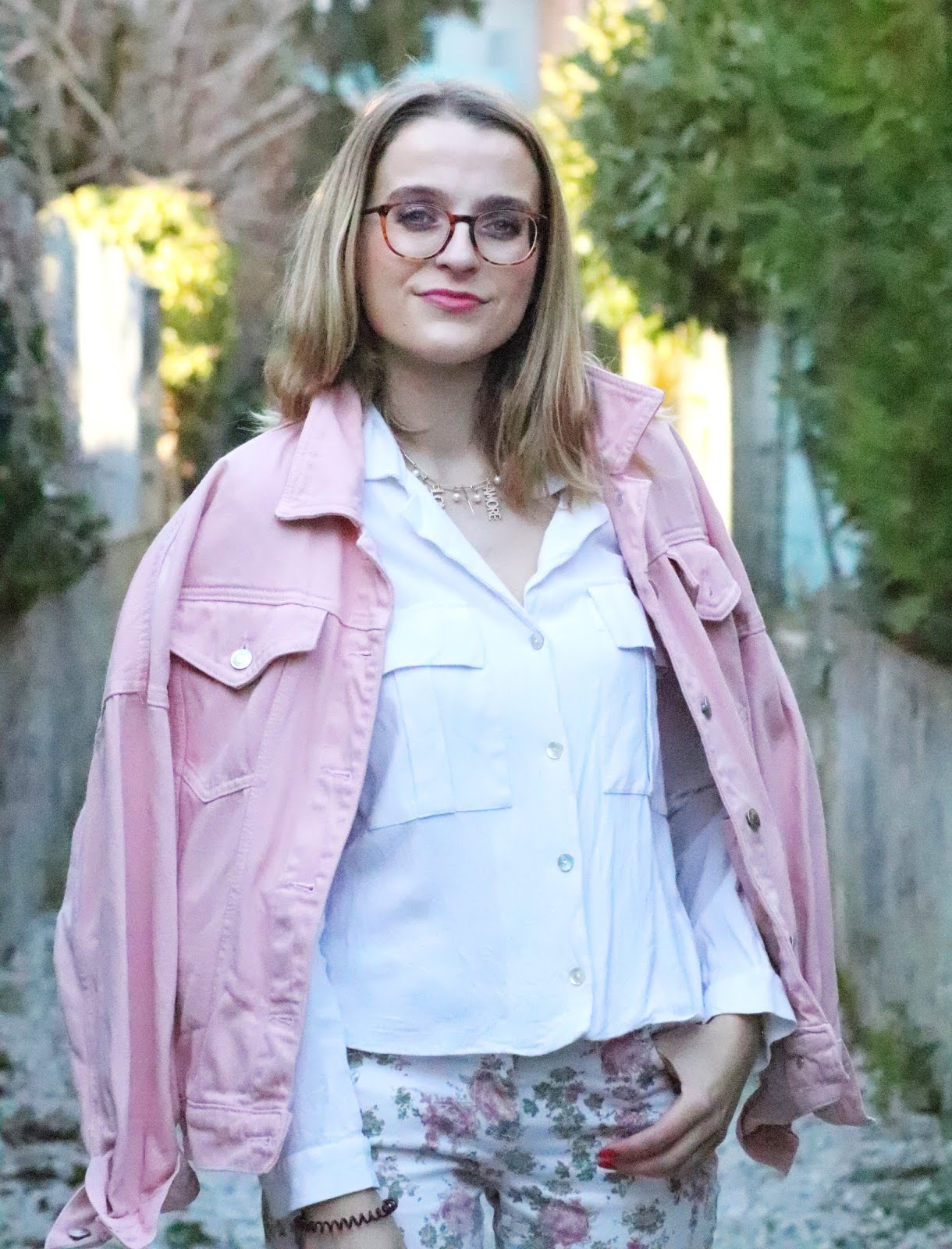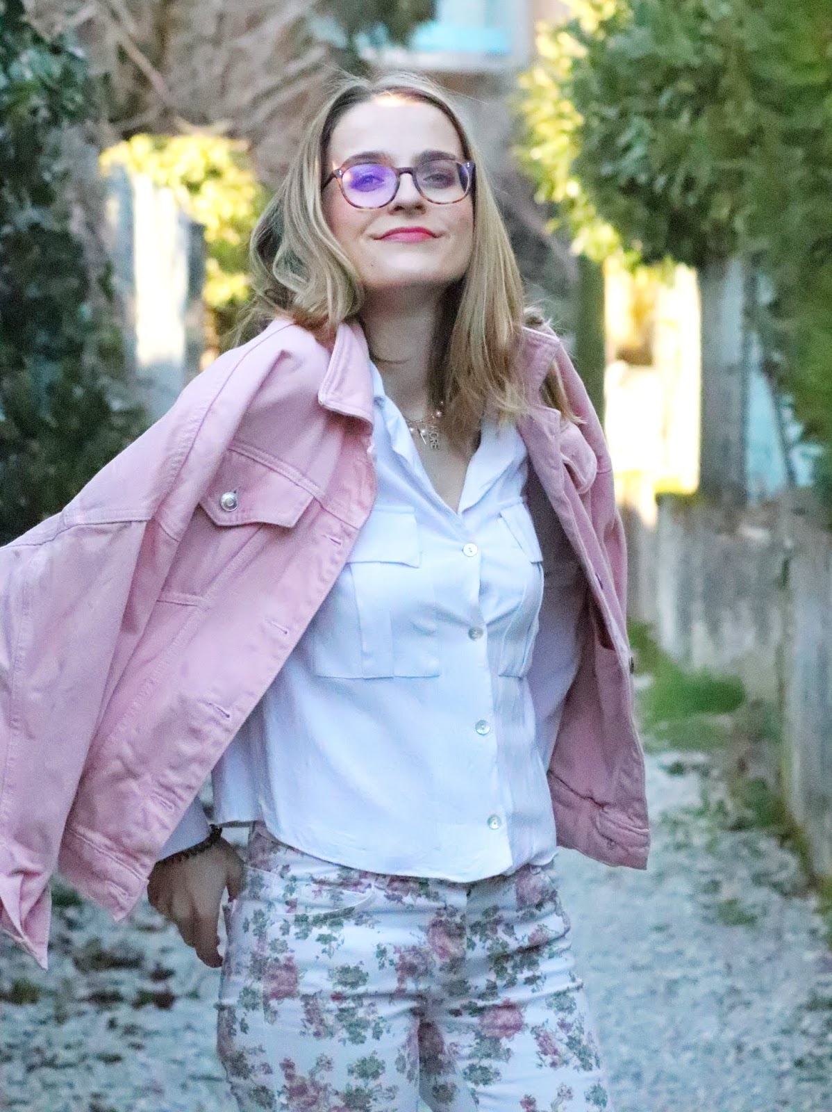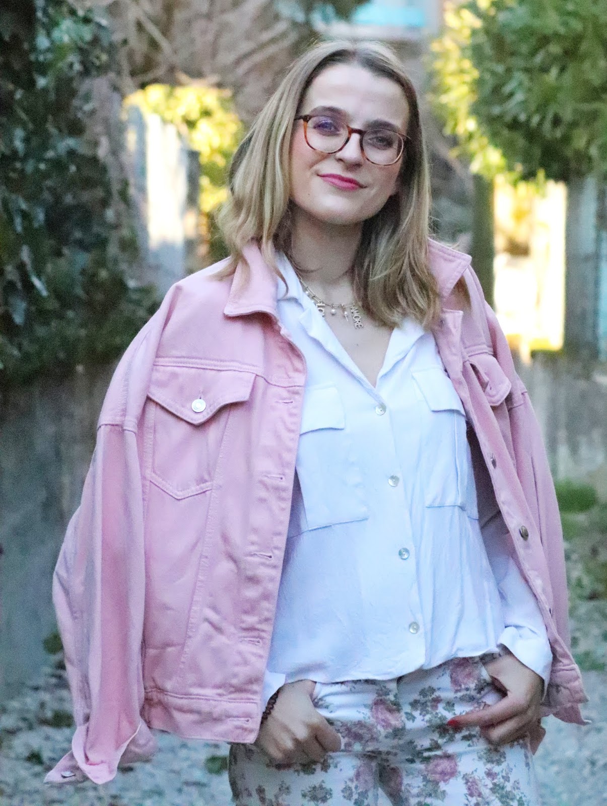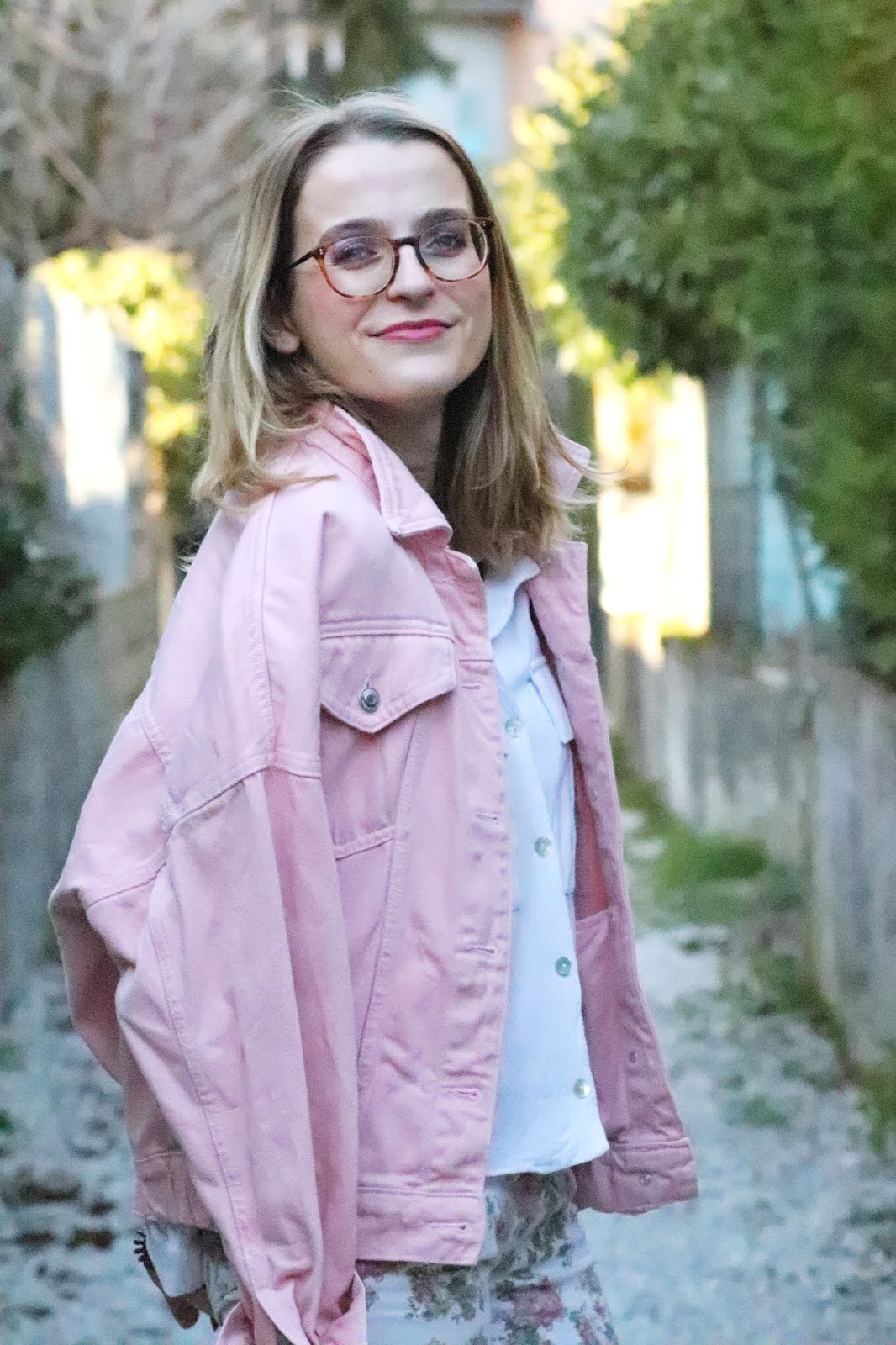 Un petit look bien printanier en ce milieu de semaine, faut dire que les températures étaient beaucoup trop agréables pour se priver de porter des tenues plus légères. Il faisait quasiment 20 degrés chez nous ce qui est assez dingue faut le dire… J’avais trop envie de ressortir cette veste en jean oversize rose shoppée l’année dernière chez mon fournisseur officiel, Stradivarius. Mon jean fleuri que j’ai maintenant depuis des annééééées littéralement, mais que j’aime toujours autant. Mes bottines blanches pour encore plus forcer l’esprit printemps et puis voilà! J’espère que ces photos faites par mon amie Kelly vous plairont!
