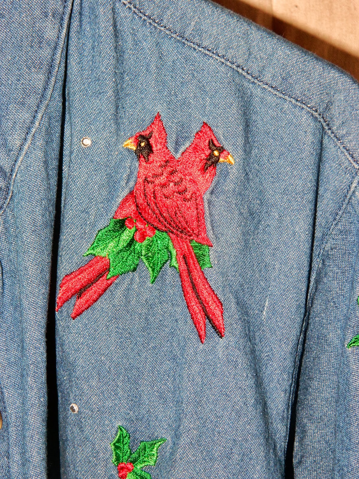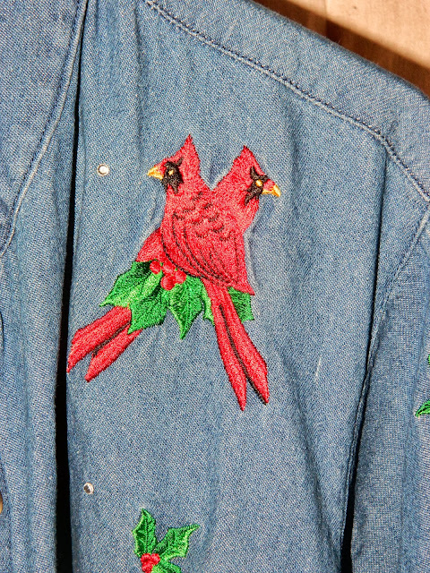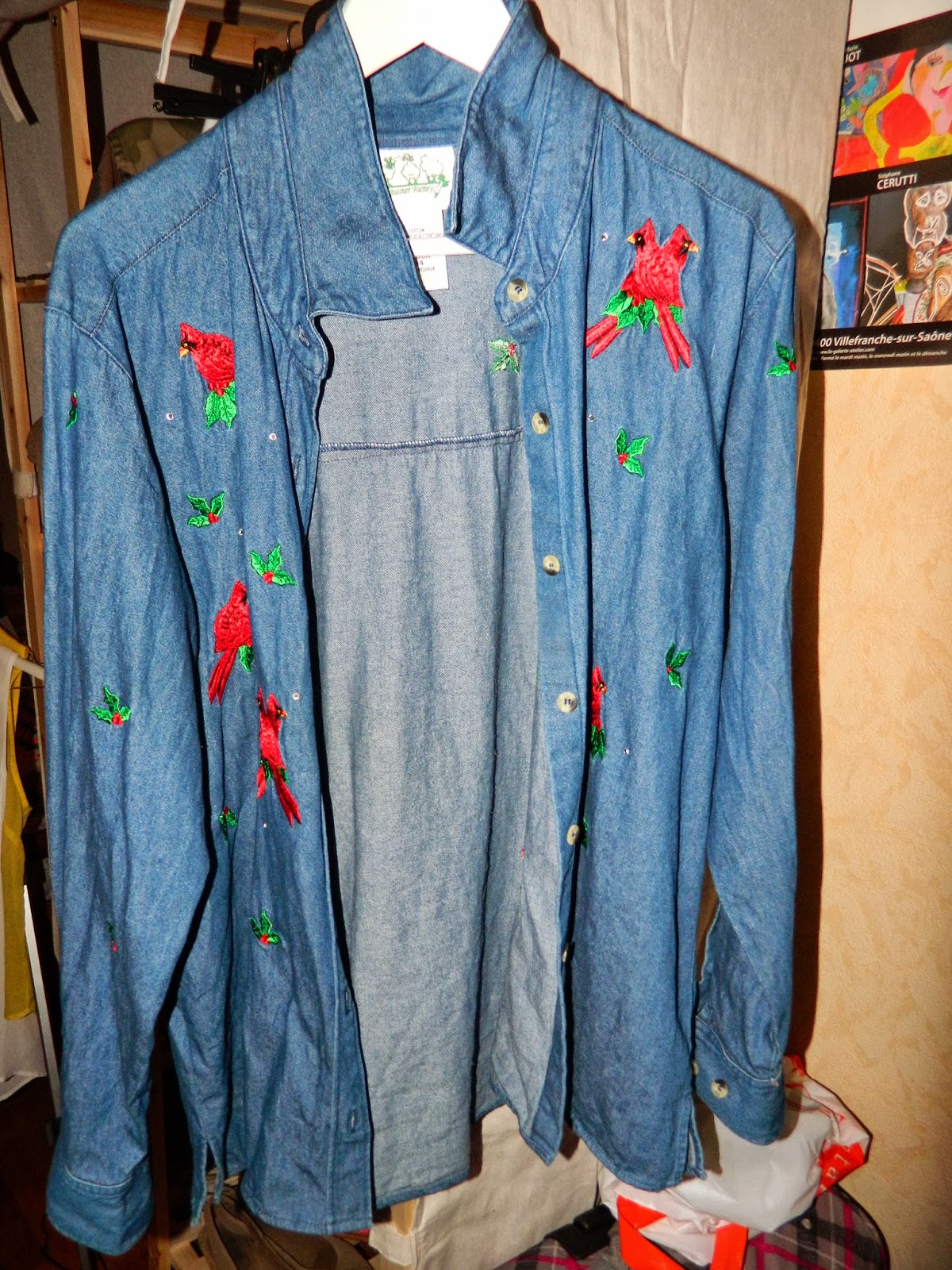 Il y a quelques temps j’ai découvert la boutique Tilt Vintage à Lyon, et j’ai bien aimé ce qu’ils proposaient, notamment leurs vestes militaires. J’en cherchais une depuis longtemps et j’avais renoncé jusqu’à en trouver là bas. Et j’ai aussi trouvé cette jolie chemise, à porter loose puisque c’est une M avec des perroquets brodés dessus, elle m’a fait de l’oeil.