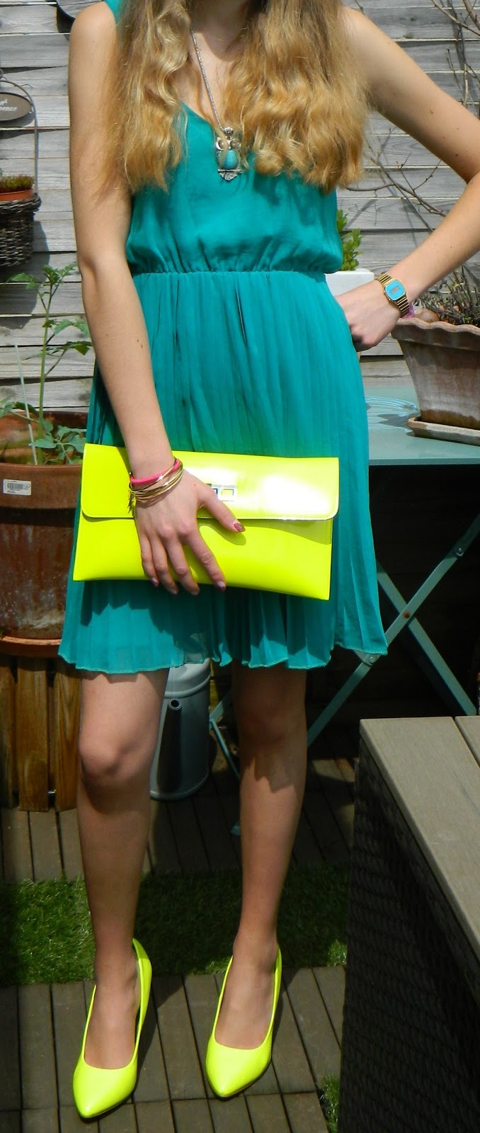 Super le sac et les chaussures fluo avec cette robe c'est parfait!