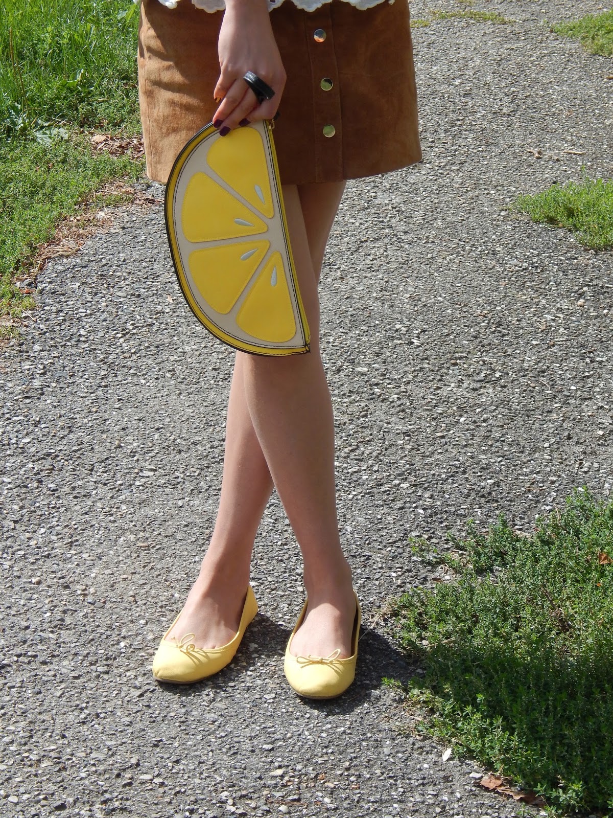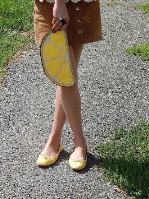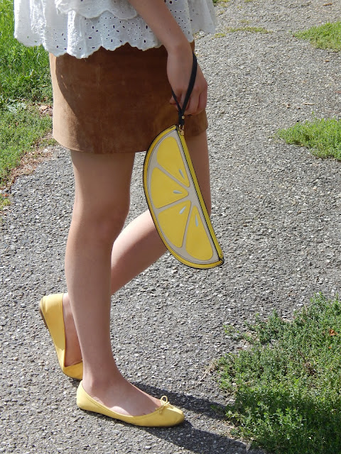 Ma blouse Zara que vous reverrez bientôt dans un Haul, ma pochette citron, vue dans mon look avec ma combinaison kaki, mes ballerines jaune que j’avais achetées chez Pimkie il y a plusieurs années mais qui sont en plastique dont la qualité et le confort ne sont pas terribles. Un petit collier, et le tour était joué pour un chouette dimanche ensoleillé pour fêter l’anniversaire de deux jumeaux de un an.